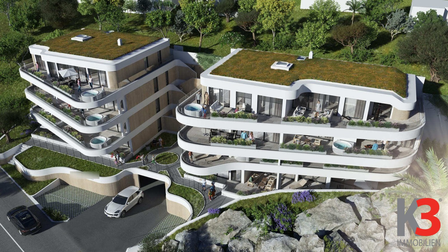Das Apartment ist mit modernsten Materialien, einem Designer-Innenraum und einem Jacuzzi auf der Terrasse mit eigenem Garten ausgestattet.