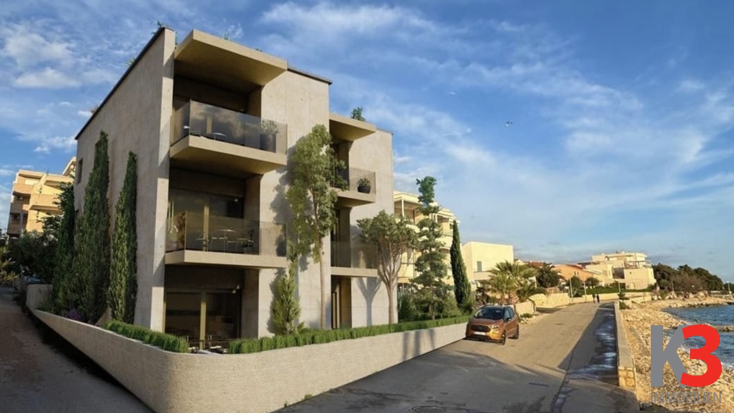 Diese Wohnung befindet sich im zweiten Stock eines Wohngebäudes mit insgesamt acht Apartments. Die Immobilie liegt direkt an der Uferpromenade, in einer wahrhaft einzigartigen Lage.