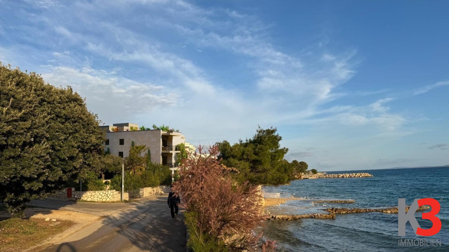 Wir präsentieren eine Wohnung in einer luxuriösen Neubauanlage, gelegen in der ersten Reihe zum Meer im Ort Mandre auf der Insel Pag.