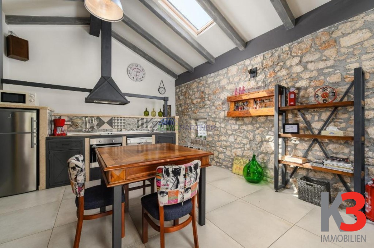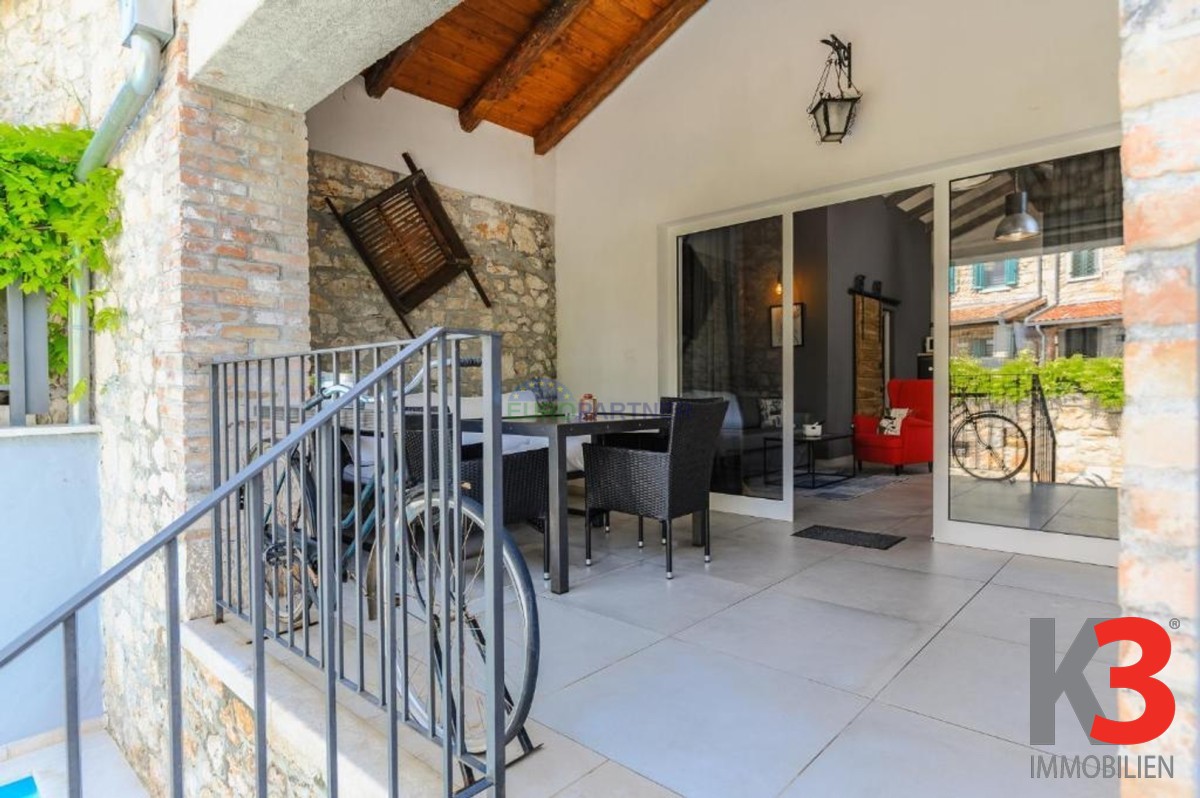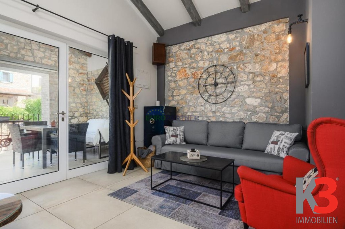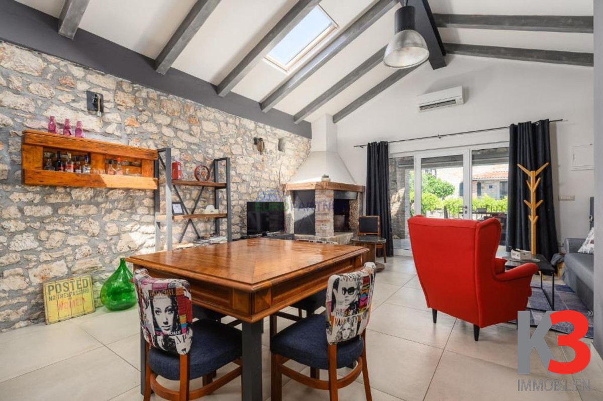 In der Nähe von Poreč, 6 km von der Stadt und 4 km vom Meer entfernt, steht ein komplett renoviertes Steinhaus zum Verkauf, das letzte in einer Reihe, mit zwei Etagen und einer Gesamtfläche von 80 m2. In einer ruhigen Umgebung gelegen, verbindet es authentischen istrischen Stil mit modernem Komfort.