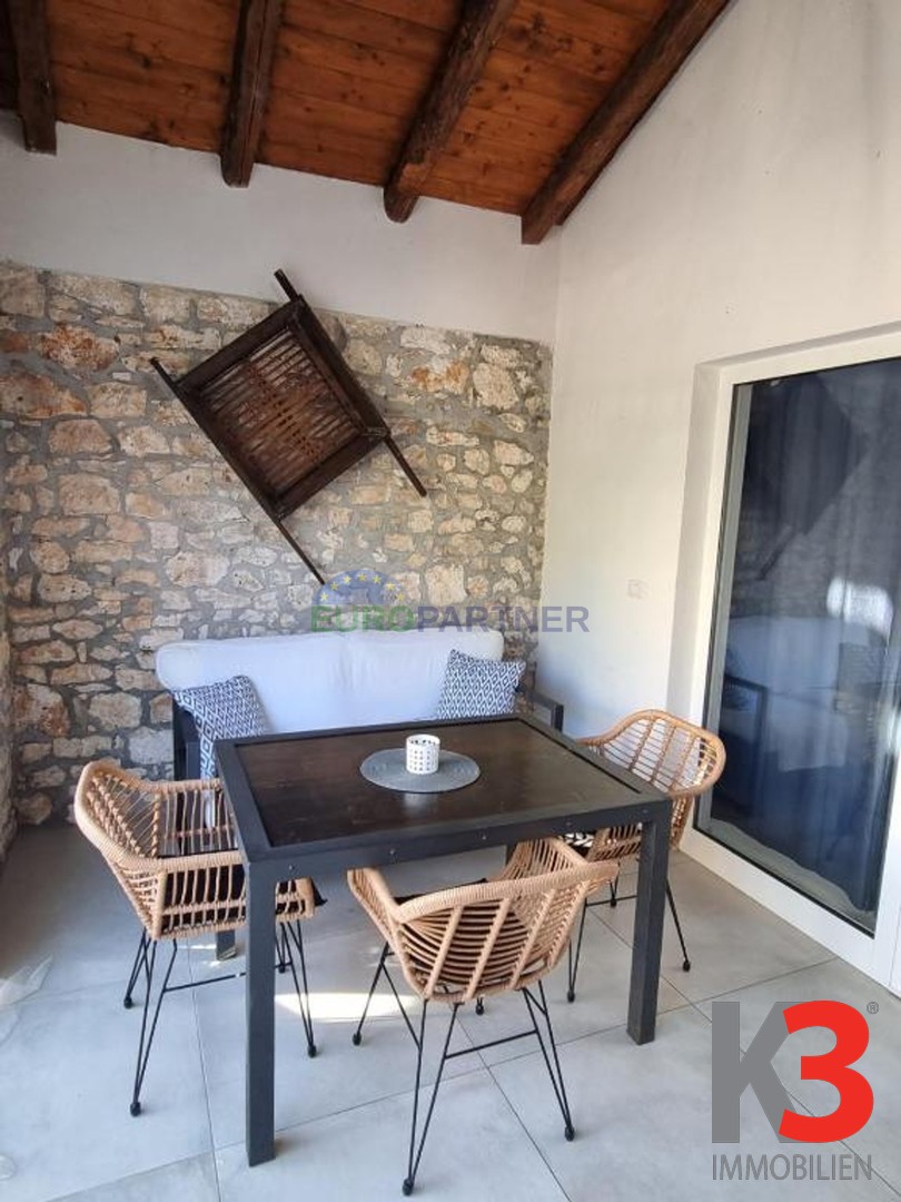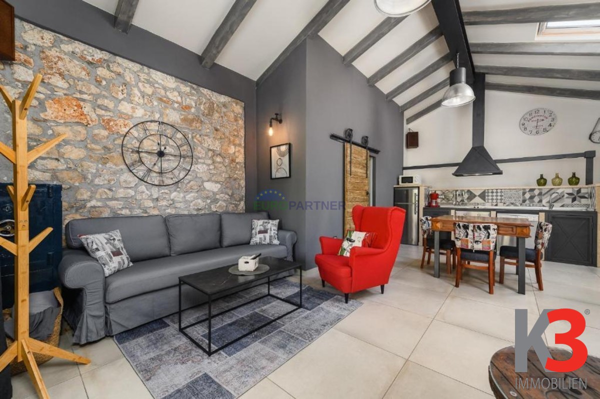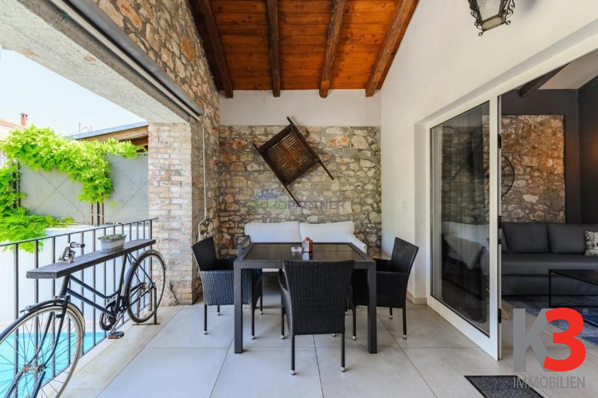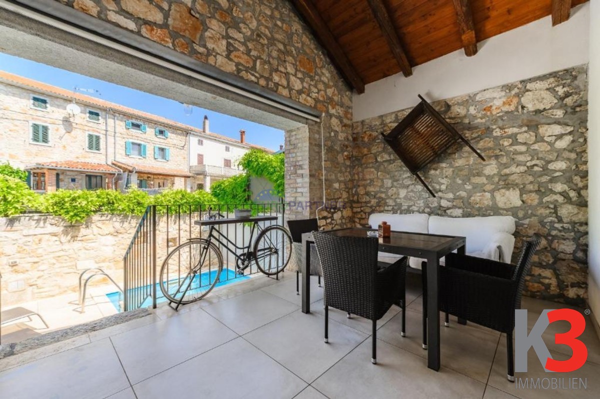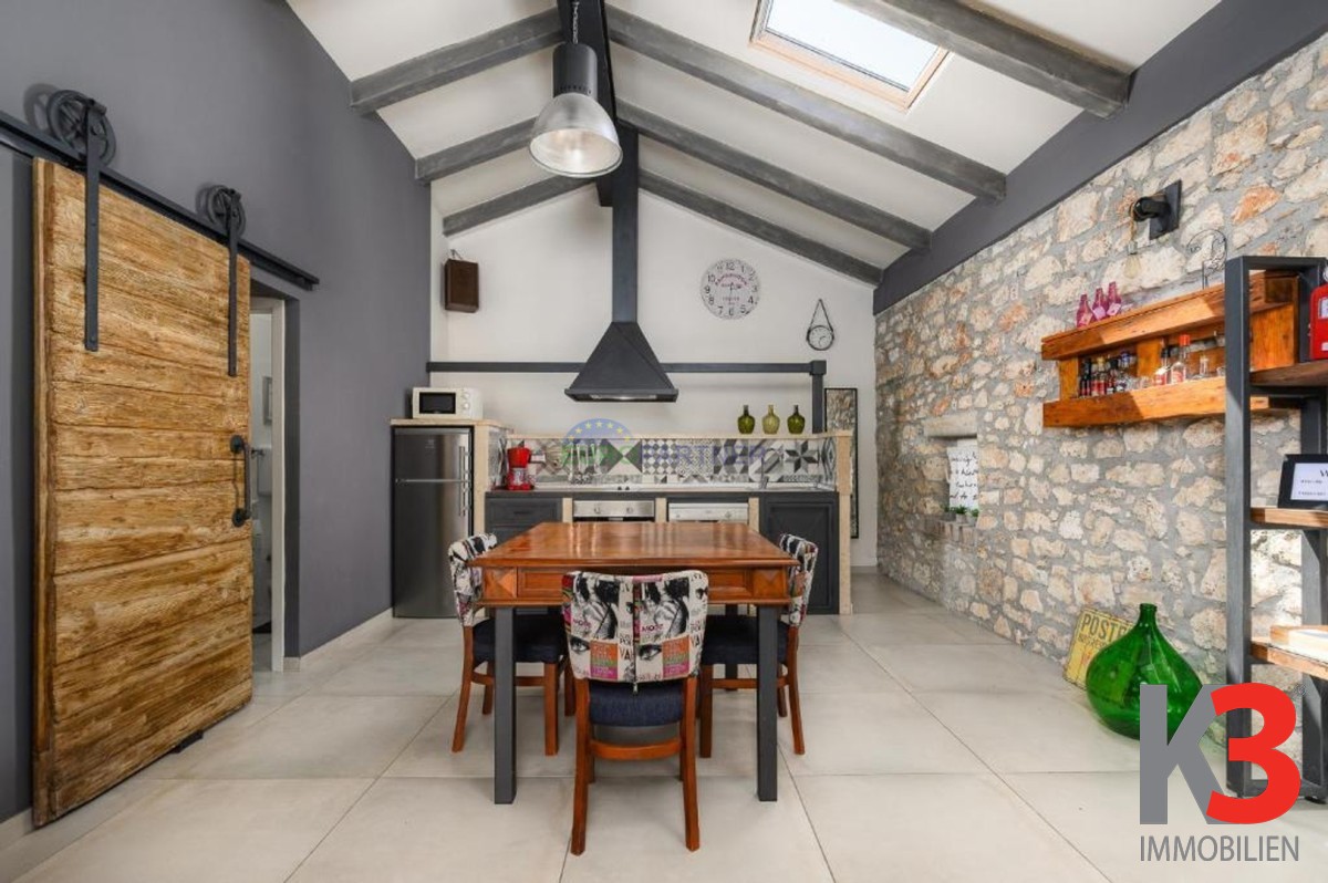 In der Nähe von Poreč, 6 km von der Stadt und 4 km vom Meer entfernt, steht ein komplett renoviertes Steinhaus zum Verkauf, das letzte in einer Reihe, mit zwei Etagen und einer Gesamtfläche von 80 m2. In einer ruhigen Umgebung gelegen, verbindet es authentischen istrischen Stil mit modernem Komfort.