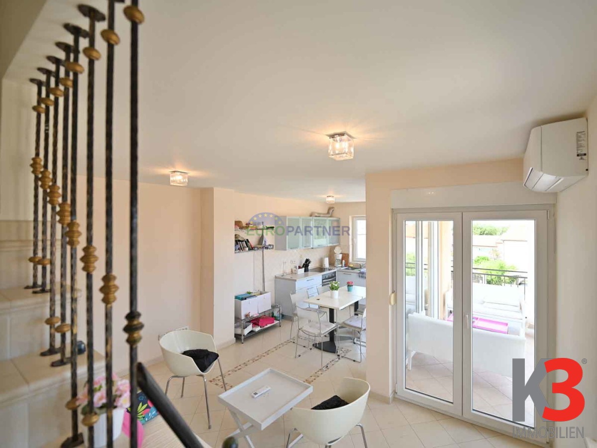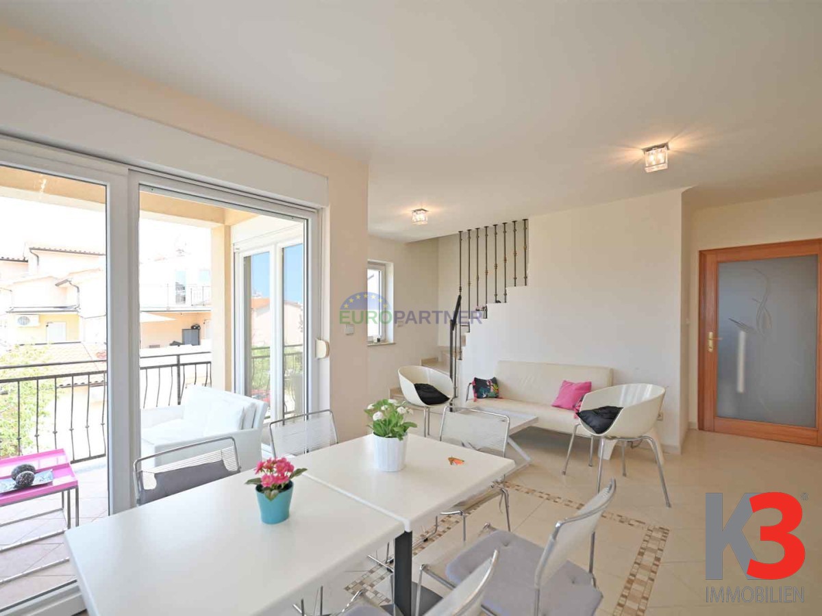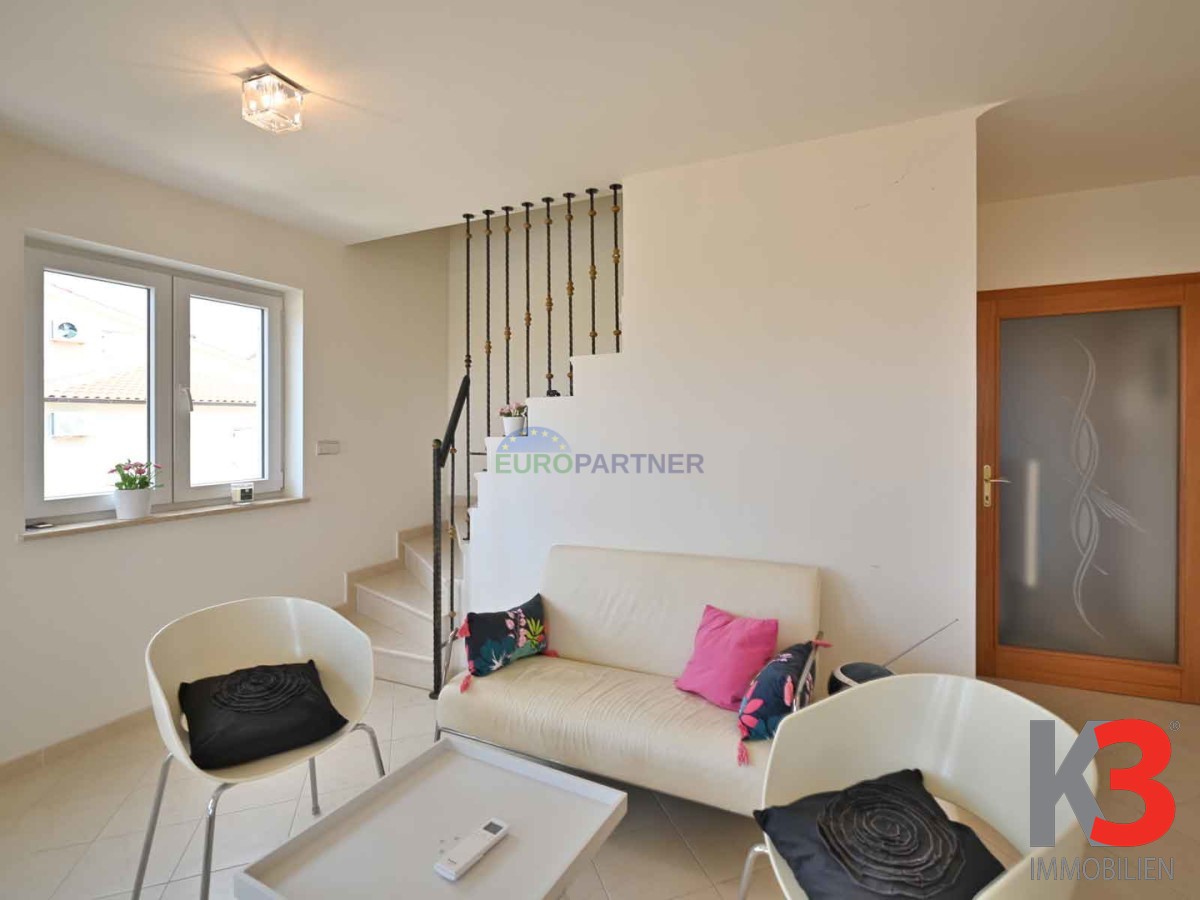 In attraktiver Lage in Poreč, nur 1.000 Meter vom Strand entfernt, steht eine geräumige und funktional eingerichtete Vier-Zimmer-Wohnung mit einer Gesamtfläche von 69,92 m2 zum Verkauf. Sie befindet sich im ersten Stock eines gut gebauten Wohngebäudes und erstreckt sich über zwei Etagen, die Komfort und Privatsphäre bieten.