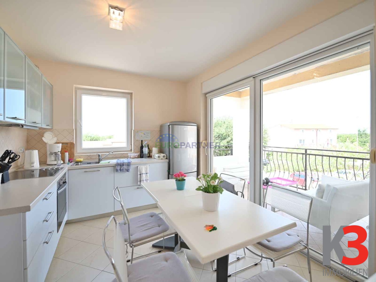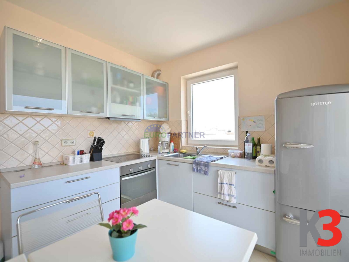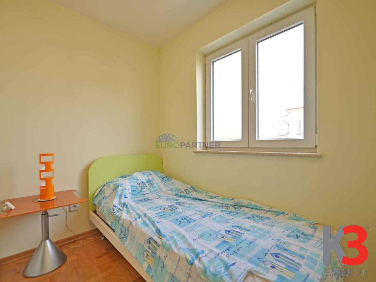 In attraktiver Lage in Poreč, nur 1.000 Meter vom Strand entfernt, steht eine geräumige und funktional eingerichtete Vier-Zimmer-Wohnung mit einer Gesamtfläche von 69,92 m2 zum Verkauf. Sie befindet sich im ersten Stock eines gut gebauten Wohngebäudes und erstreckt sich über zwei Etagen, die Komfort und Privatsphäre bieten.