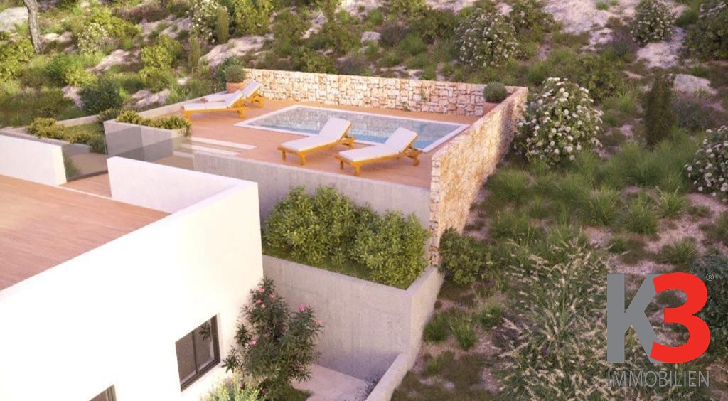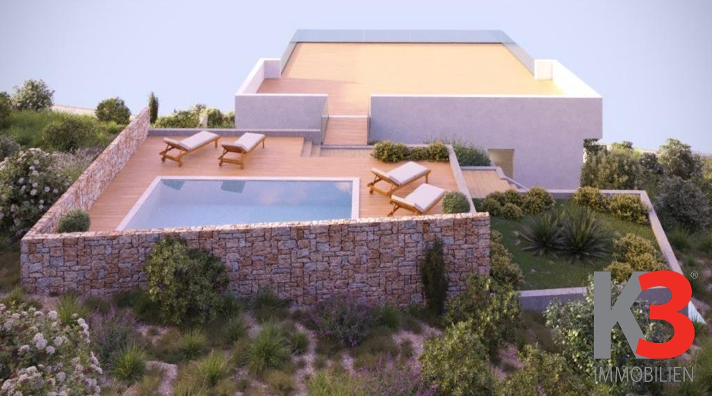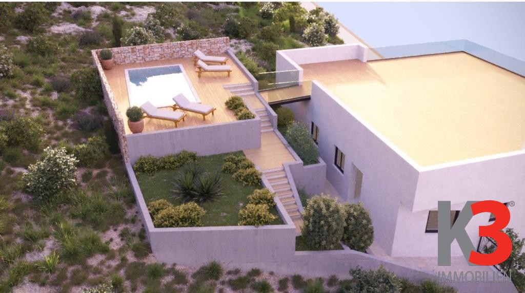 Ražanj, Villa (Rohbau) mit Pool, erste Reihe am Meer