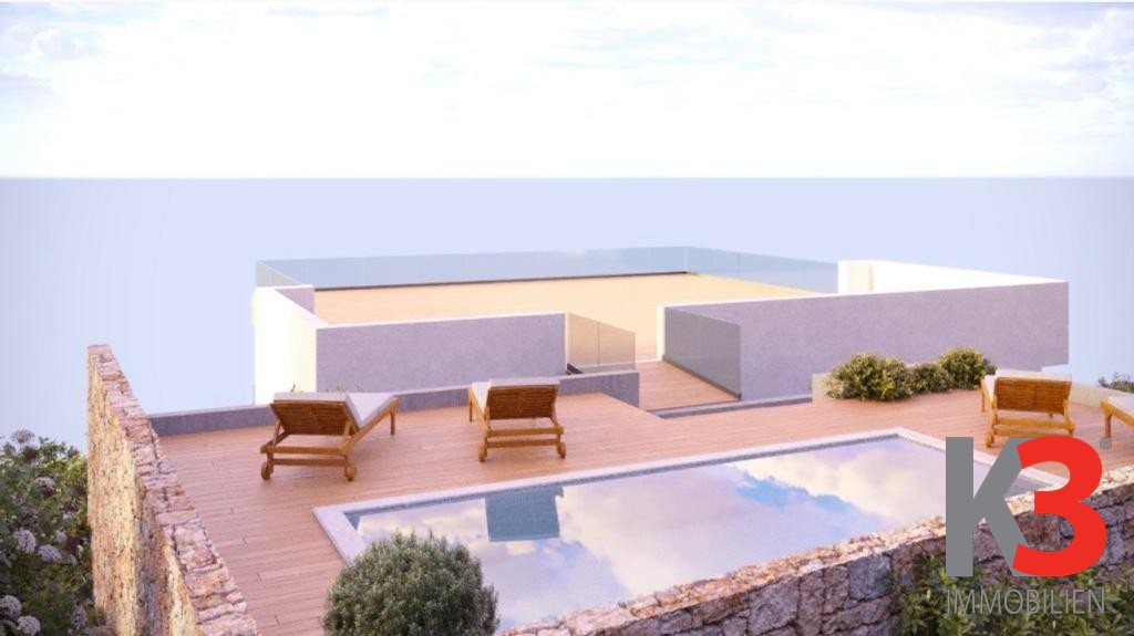 • Das Exterieur umfasst eine große Terrasse mit Pool (6x4 m), der ideale Ort, um sich zu entspannen und sonnige Tage mit dem Klang der Wellen zu genießen.
