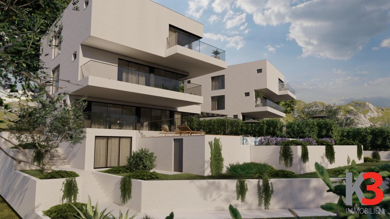 Im zweiten Stock werden sich 4 Schlafzimmer mit eigenem Bad befinden, die jeweils Zugang zu einem Balkon haben.