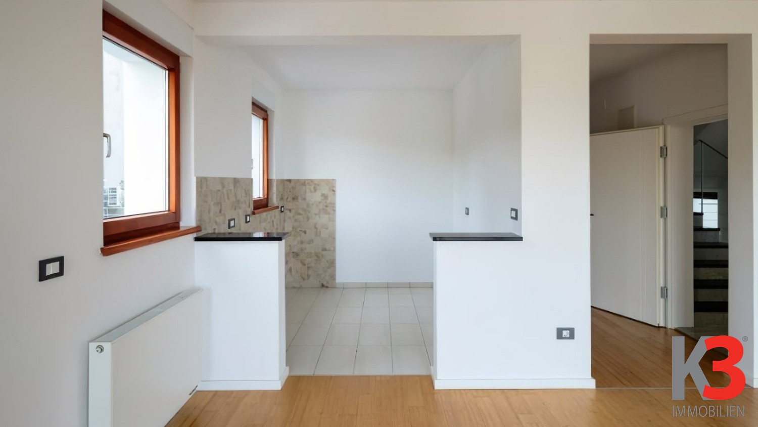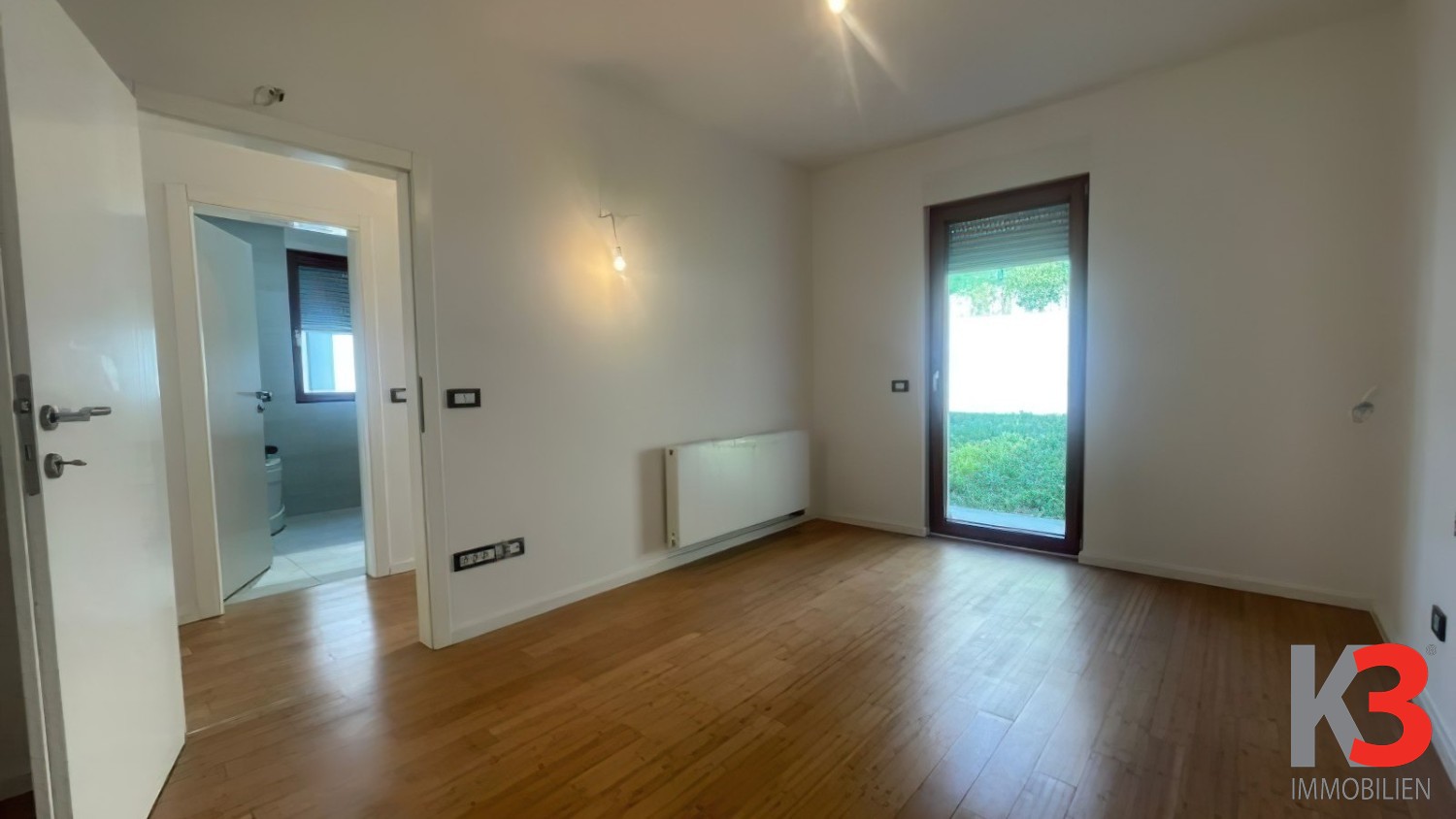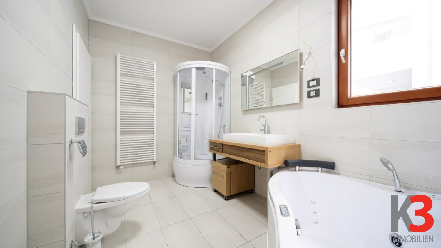 Die Wohnung befindet sich in einer urbanen Villa mit zwei Wohnungen und hat einen eigenen Eingang, was optimale Privatsphäre garantiert.