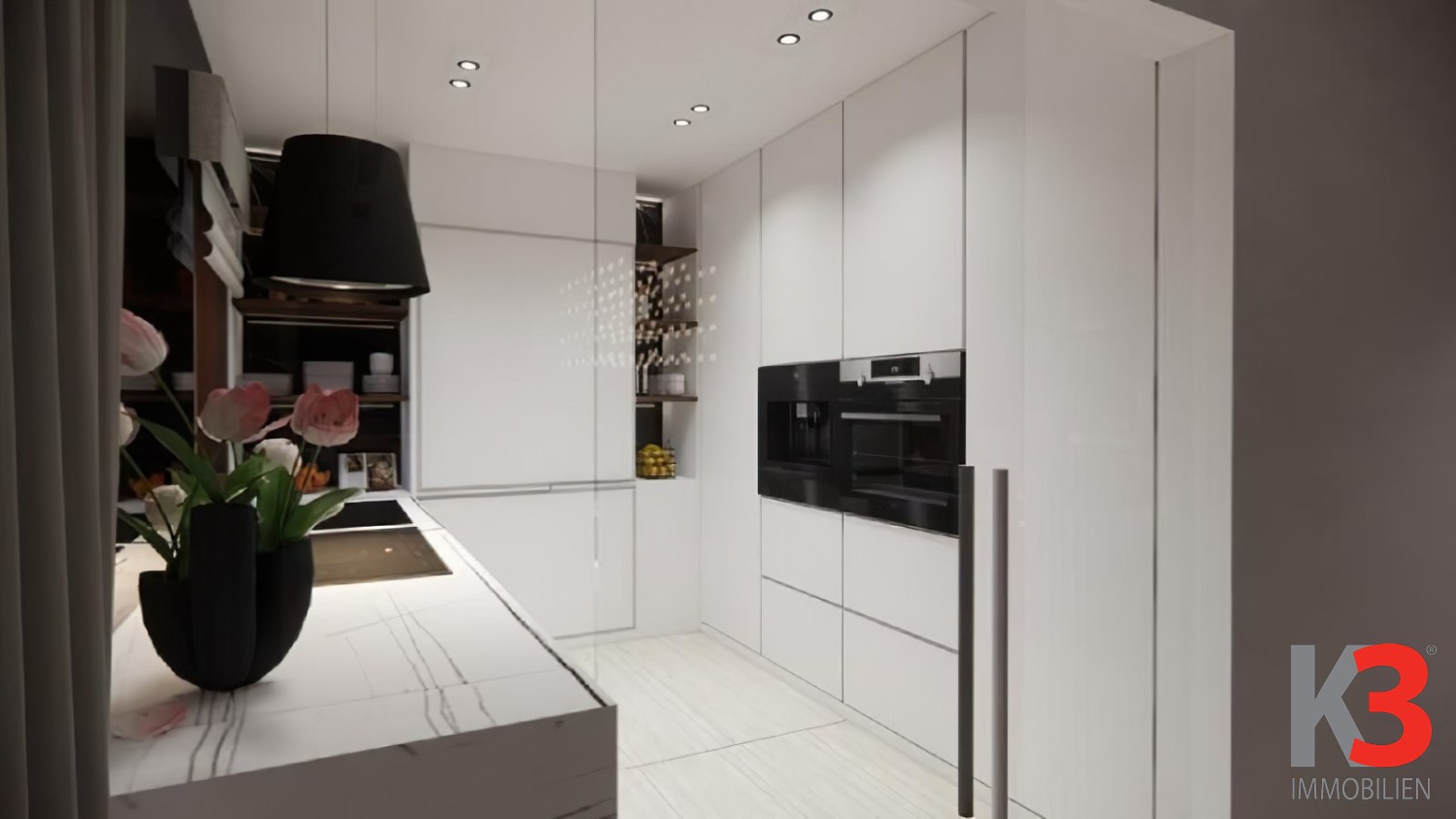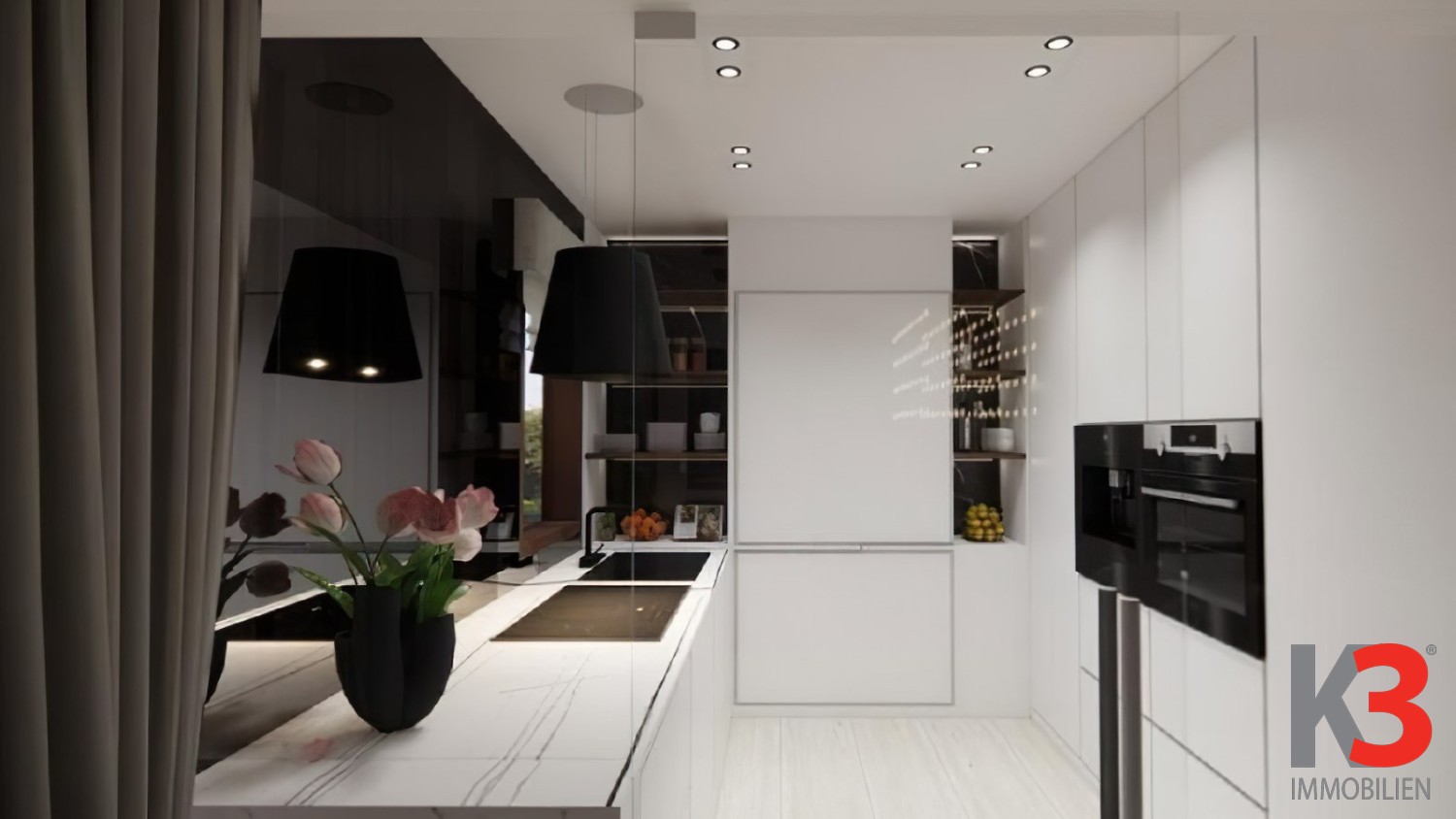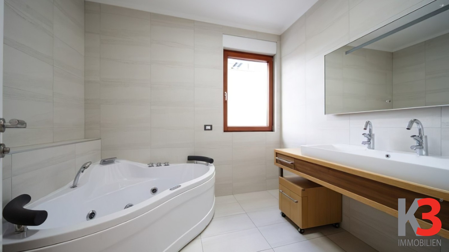 Die Wohnung befindet sich in einer urbanen Villa mit zwei Wohnungen und hat einen eigenen Eingang, was optimale Privatsphäre garantiert.