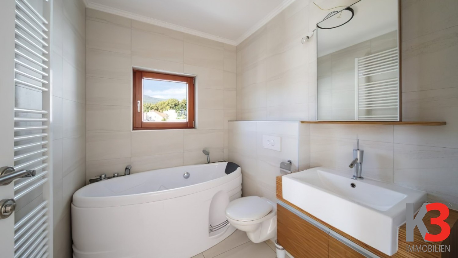 Was diese Wohnung besonders macht, ist der großzügige Garten mit 133,50 m2, während die Terrasse (34 m2) und der Balkon (14,38 m2) zusätzlichen Komfort bieten.
