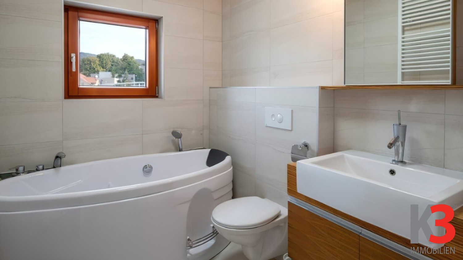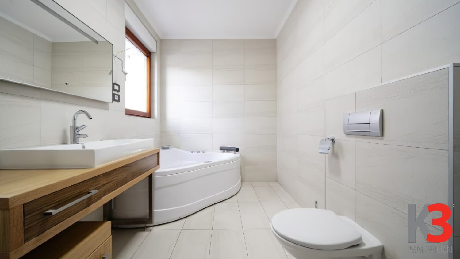 Zur Wohnung gehört auch eine Garage (34,40 m2) mit zwei Stellplätzen sowie ein zusätzliches unüberdachtes Außenparkplatz.