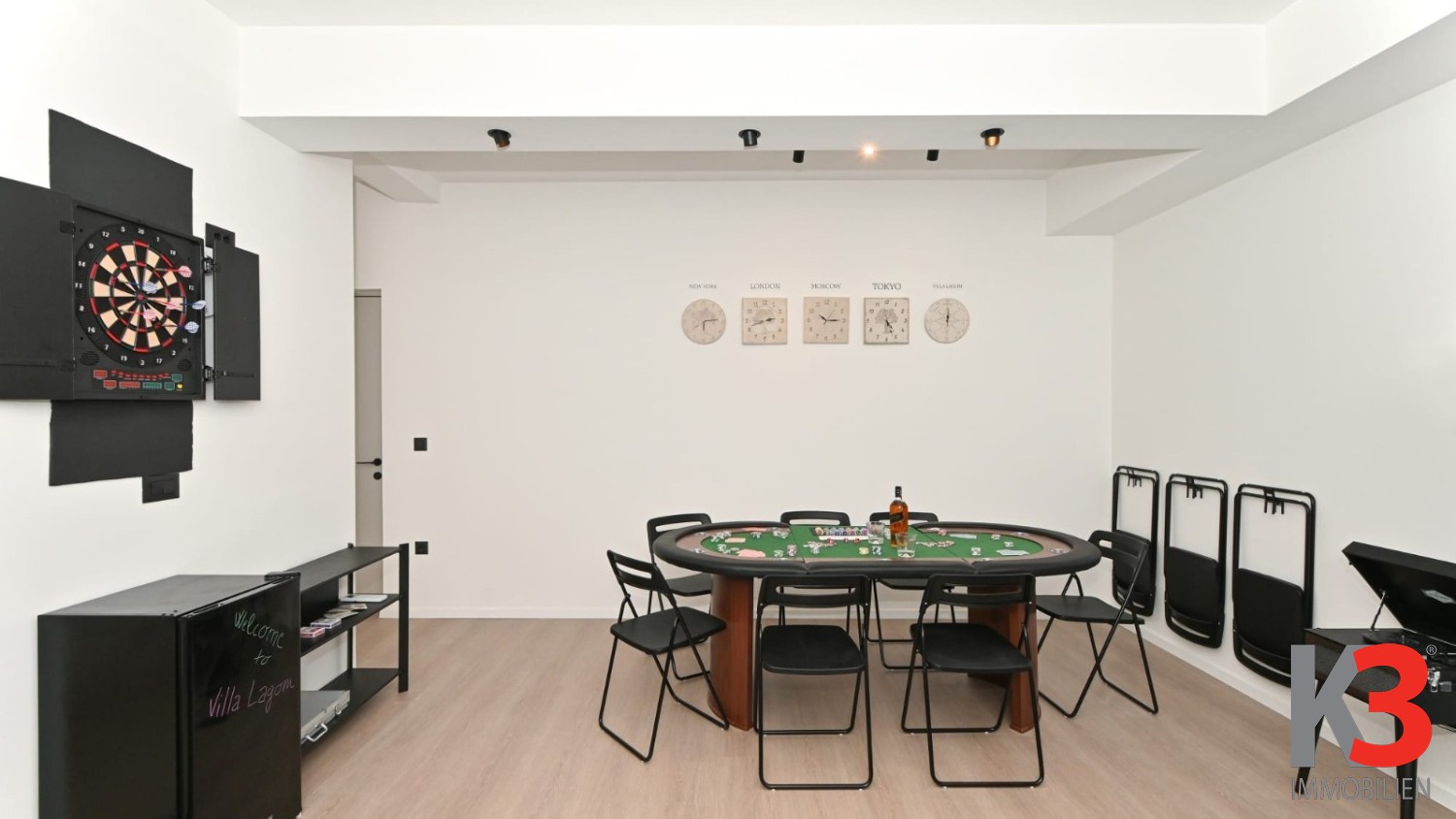 Ihre tägliche Fitnessroutine wird nicht gestört, da es auch einen Trainingsraum im Keller gibt, der perfekt ist, um der Sommerhitze zu entkommen, aber auch ideal für Winterabende, an denen Sie Poker oder Darts spielen können, begleitet von Musik aus Retro-Lautsprechern.