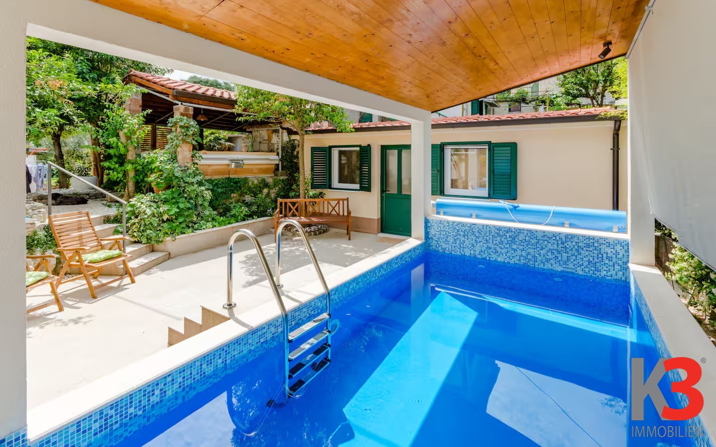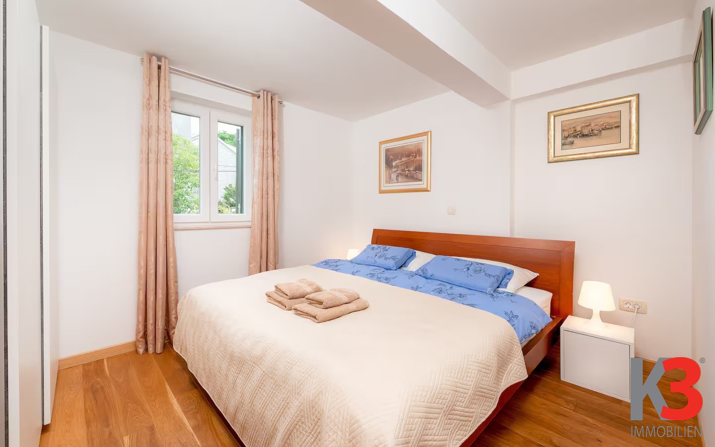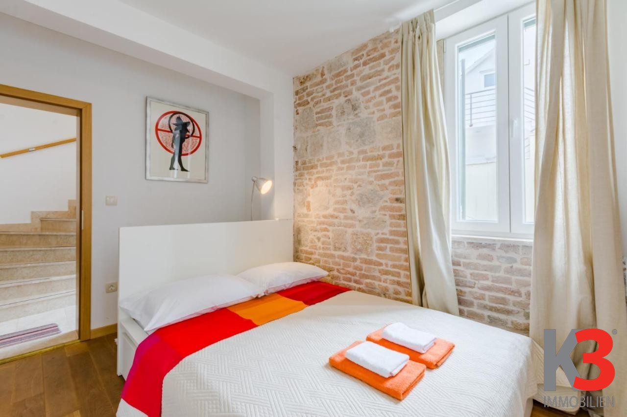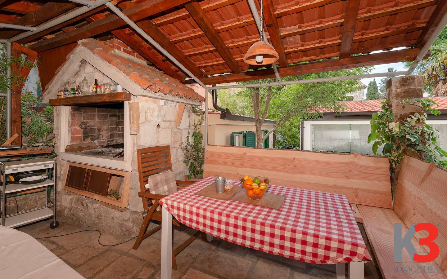 In der authentischen Umgebung des Stadtteils Varoš, nur wenige Schritte vom Diokletianpalast und der Riva entfernt, befindet sich diese außergewöhnliche Immobilie – ein komplett renoviertes Steinhaus, das historischen Charme mit modernem Luxus vereint. Auf einer Gesamtfläche von 192 m², verteilt auf das Haupthaus und ein kleineres Nebengebäude, befinden sich fünf großzügige Schlafzimmer und drei elegante Badezimmer. Eine private Sauna sowie ein überdachter Pool bieten zusätzlichen Komfort – eine wahre Seltenheit im Herzen der Stadt.