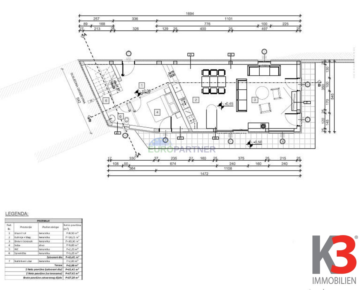 Der Raum, in dem Komfort und Praktikabilität verschmelzen, erstreckt sich über 135 m2 und bietet den perfekten Ort für das Familienleben in Poreč. Auf einem Grundstück von 651 m2 gelegen, zeichnet sich diese Immobilie durch ihre nach Süden ausgerichteten Räume aus, die tagsüber reichlich natürliches Licht bieten.