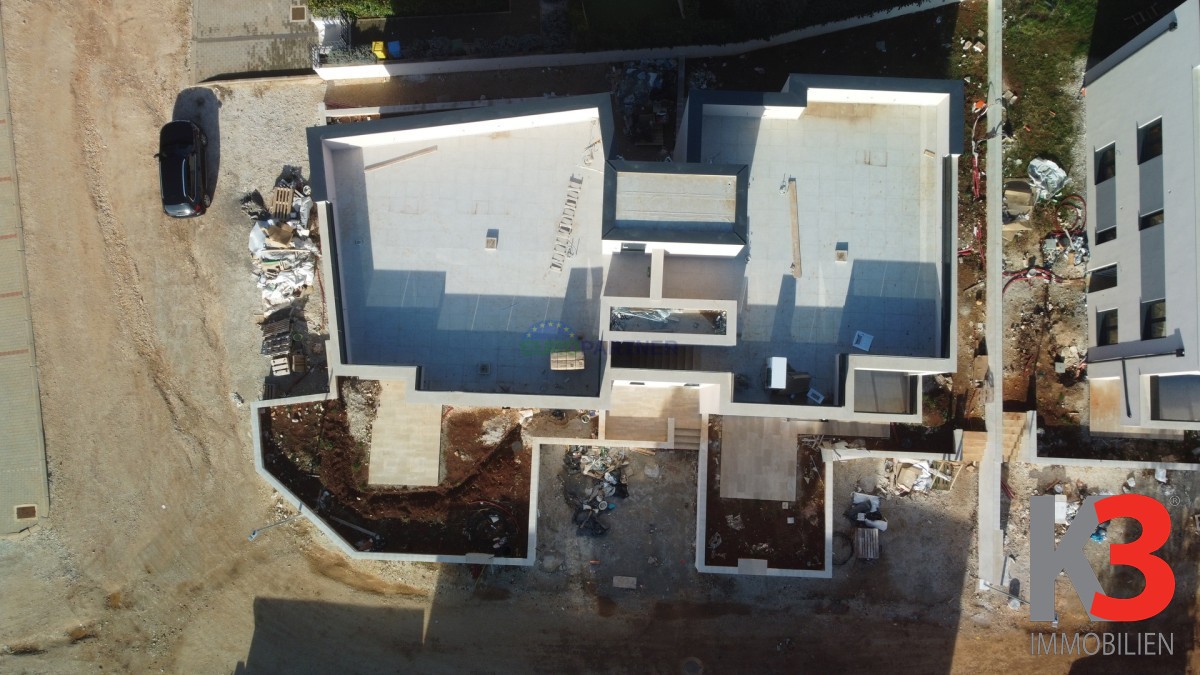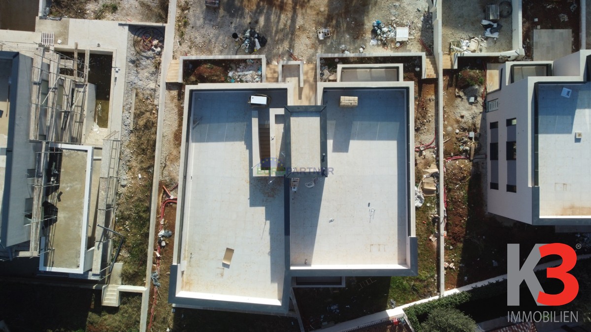 Es entstehen zwei Gebäude mit je 4 Wohneinheiten. Die Gebäude selbst befinden sich in einem ruhigen, neu erbauten Teil des Dorfes und sind von Neubauten umgeben. Zwei Wohnungen befinden sich im Erdgeschoss, denen ein Teil des Gartens gehört, während zwei Wohnungen im Obergeschoss über eigene Dachterrassen verfügen.