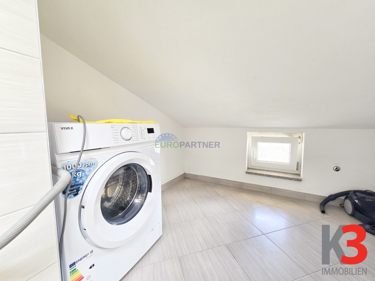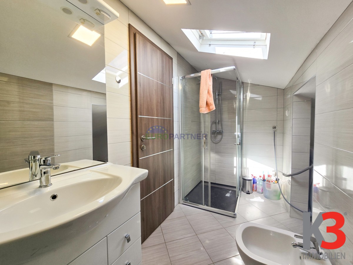 Zur Wohnung gehören außerdem eine 13,88 m2 große Garage im Untergeschoss des Gebäudes und ein separater Abstellraum mit 8,97 m2.