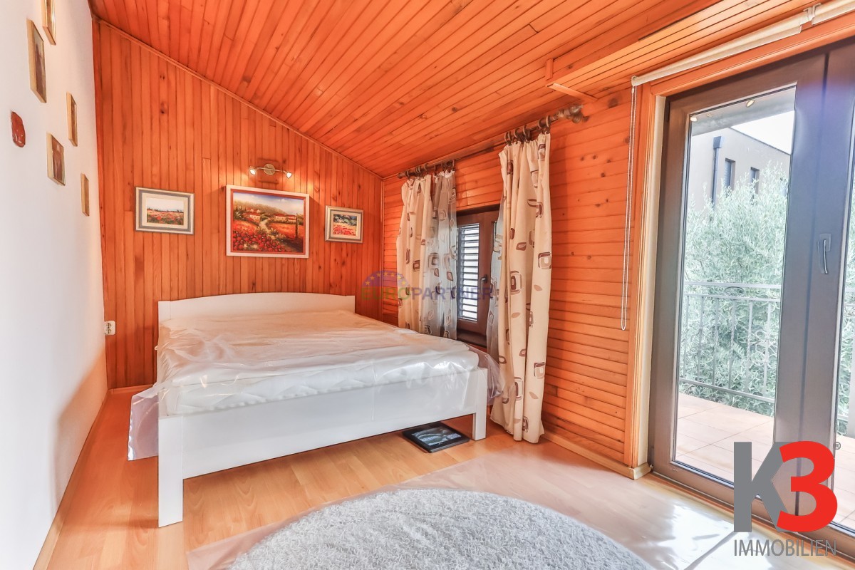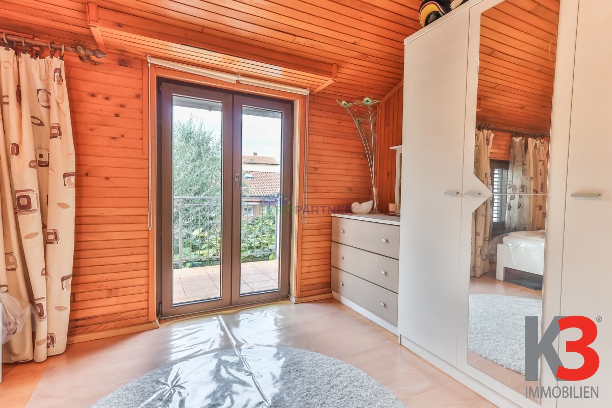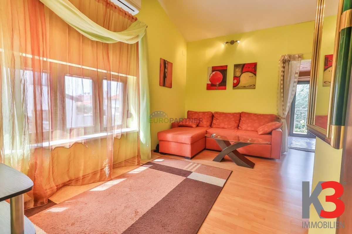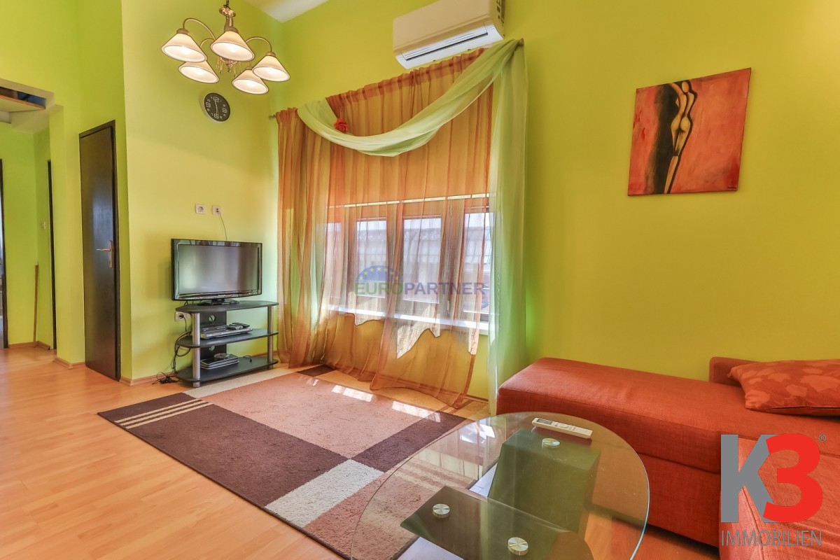 Zum Verkauf steht eine charmante Wohnung im ersten Stock mit eigenem Garten, nur 800 Meter vom Zentrum von Poreč und dem ersten Strand entfernt.