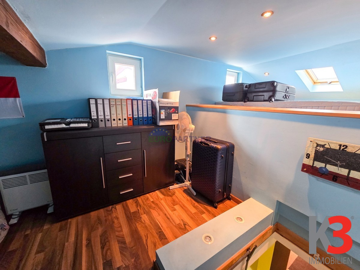 Die Wohnung besteht aus einem Eingangsbereich, einem Badezimmer, einem geräumigen Wohnzimmer mit angeschlossener Küche und Esszimmer, einem Schlafzimmer, einer Terrasse und einer Galerie mit Kinderzimmer.