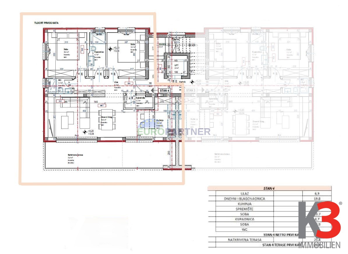Zum Verkauf steht eine wunderschöne 80,20 m2 große Erdgeschosswohnung in einem modernen Neubau. Eine 23,4 m2 große überdachte Terrasse bietet zusätzlichen Platz zum Entspannen im Freien.