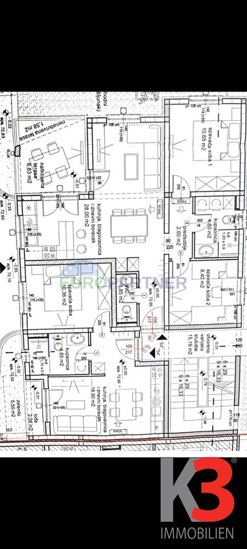 Zweizimmerwohnung mit Ausrichtung nach Südwesten 43 m2, mit einem Schlafzimmer, Bad, Küche und Wohnzimmer sowie Loggia mit Meerblick. Das Gebäude ist sehr gut gebaut mit klassischen Ziegelwänden, PVC-Zimmerei verfügt über 3 Fenster mit elektrischen Jalousien, die Ausstattung umfasst hochwertige italienische Keramik und die Zimmertüren sind aus Massivholz. Die Badezimmer verfügen über Fußbodenheizung, Sanitärkeramik von Hansgrohe und erstklassige Eichenparkettböden.