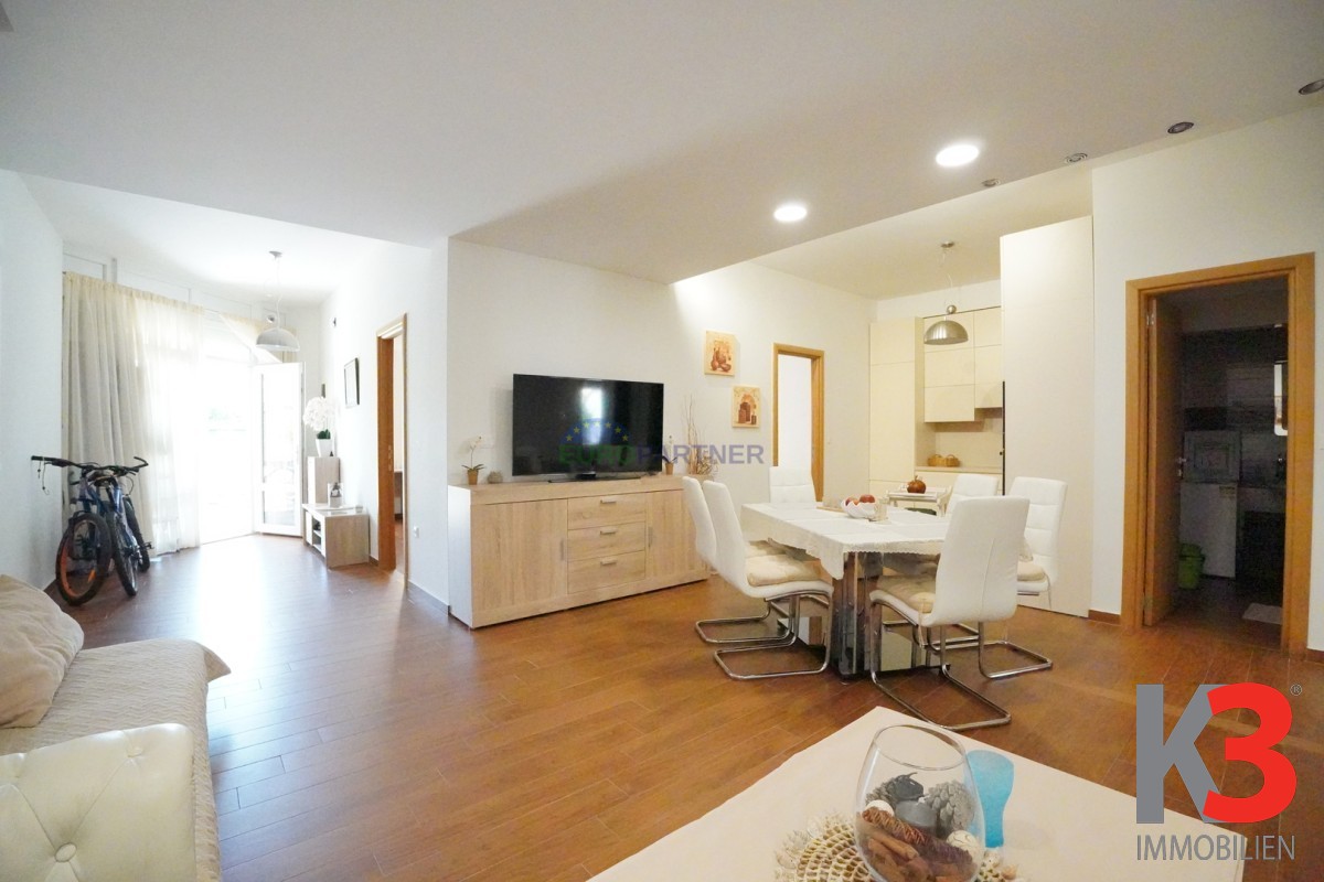 Zum Verkauf steht eine geräumige Wohnung mit einer Gesamtfläche von 92 m2 in äußerst attraktiver Lage, nur 500 m vom Zentrum von Poreč entfernt. Die Immobilie befindet sich in ruhiger Umgebung und dennoch in unmittelbarer Nähe aller wichtigen Einrichtungen für einen angenehmen Alltag – Geschäfte, Restaurants, Schulen, Kindergärten und das Meer.