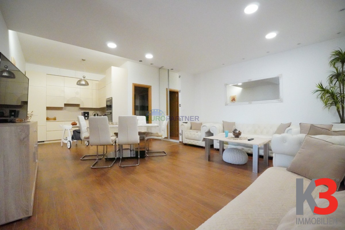 Die Wohnung besteht aus einem Eingangsbereich, einer Küche mit angrenzendem Wohn- und Essbereich, zwei geräumigen Schlafzimmern und einem Badezimmer. Ein besonderes Highlight ist die 30 m2 große Terrasse mit angelegtem Garten, ideal zum Entspannen und Verweilen im Freien.