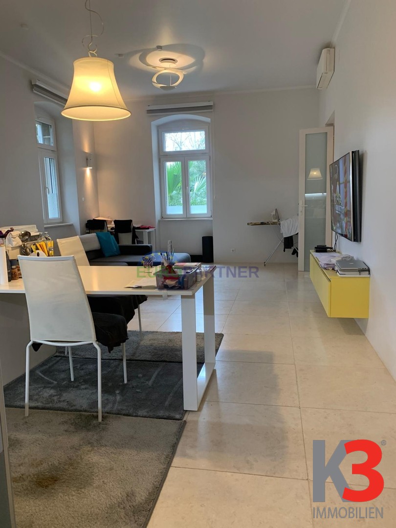 Zum Verkauf steht eine geräumige und luxuriös eingerichtete 2-Zimmer-Wohnung im Erdgeschoss eines renovierten Wohngebäudes im prestigeträchtigsten Teil von Split, in unmittelbarer Nähe des Stadtparks Đardina und des Eingangs zum Palast. Die Wohnung befindet sich in einem Gebäude, das unter Denkmalschutz steht.