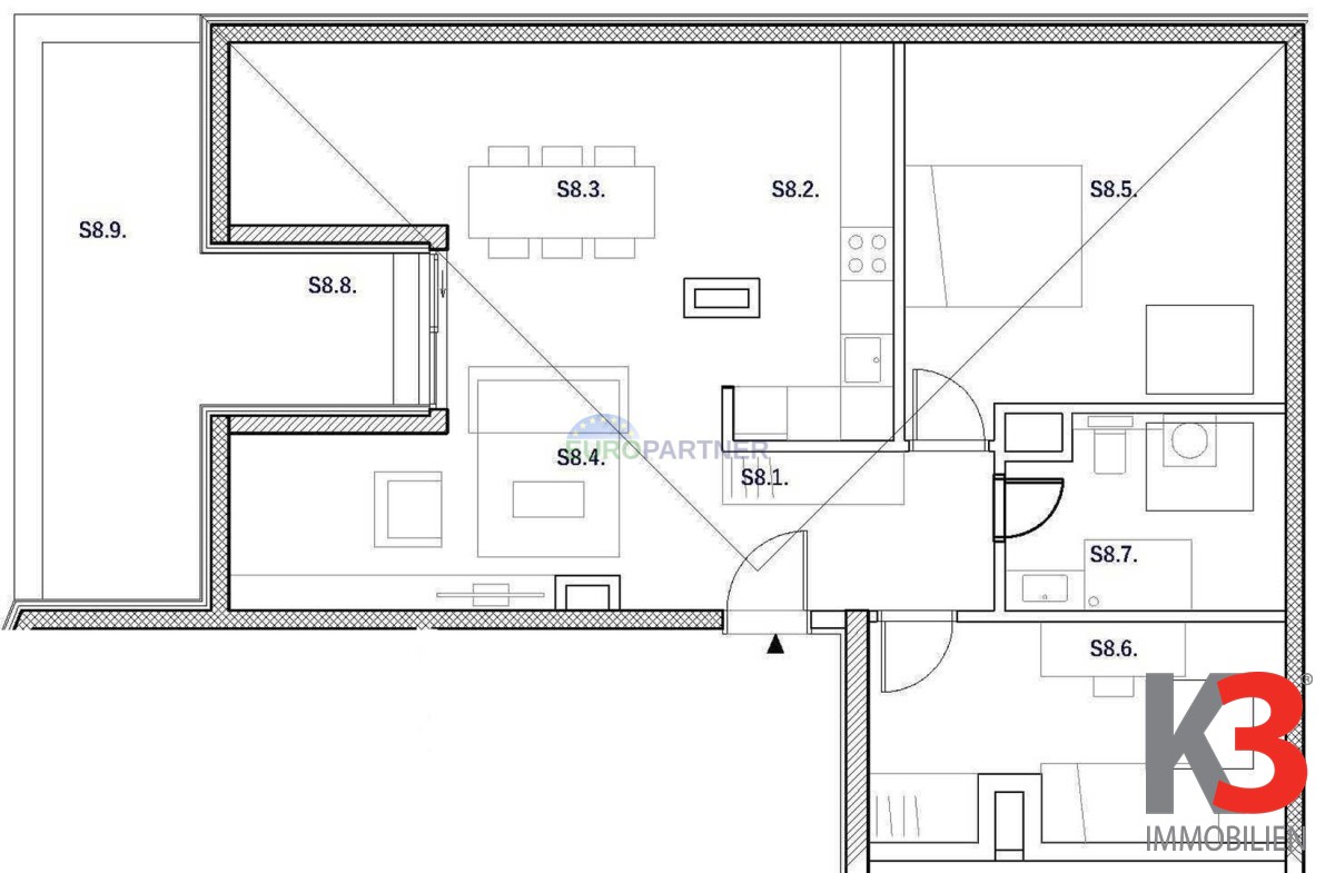 Die Fläche der Wohnung beträgt mit Koeffizienten 66,80 m2 und die Nutzfläche beträgt 94 m2 • Baubeginn: 10/2024. • Fertigstellung: 6/2026.