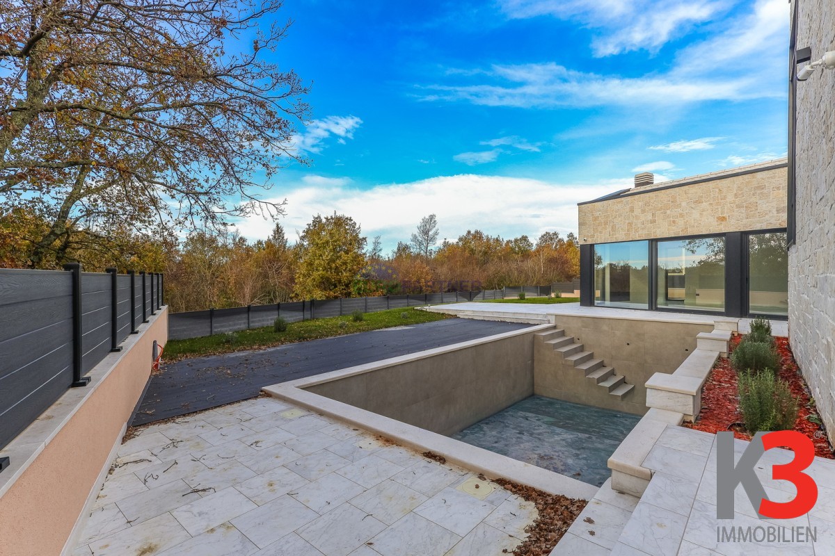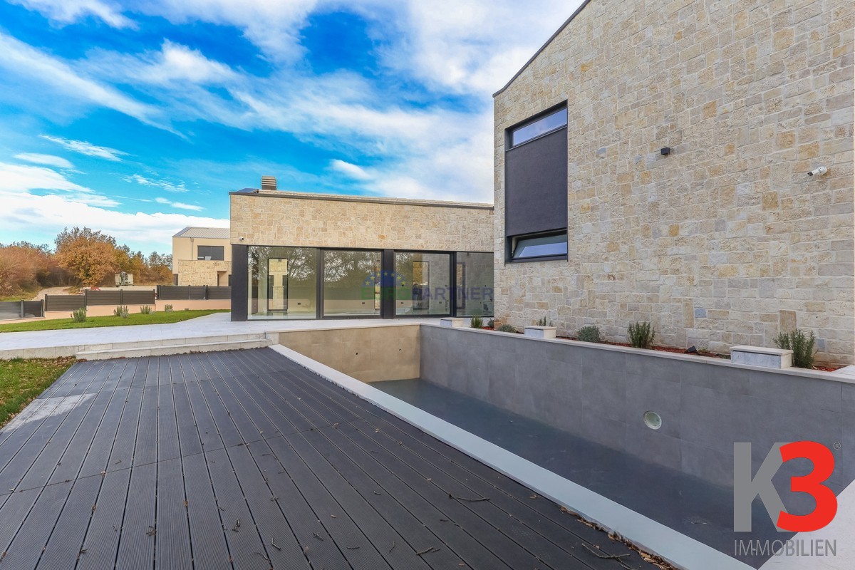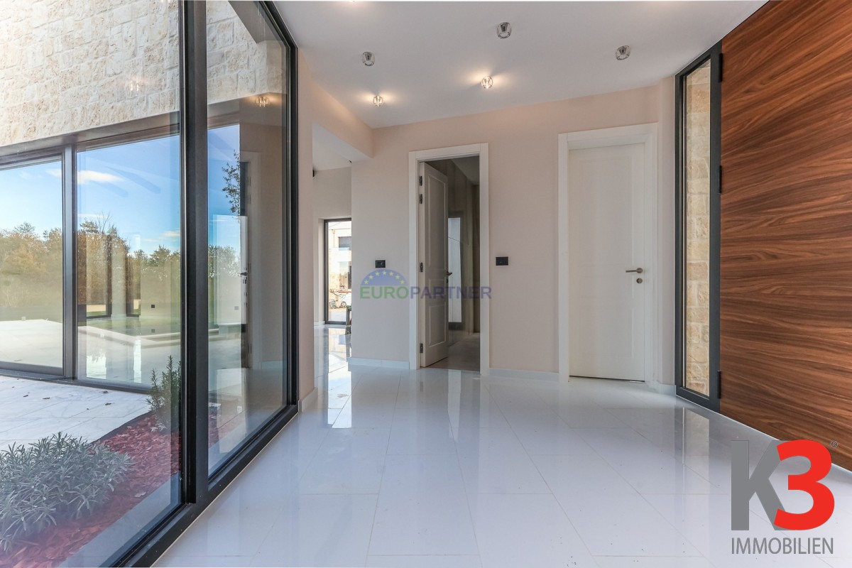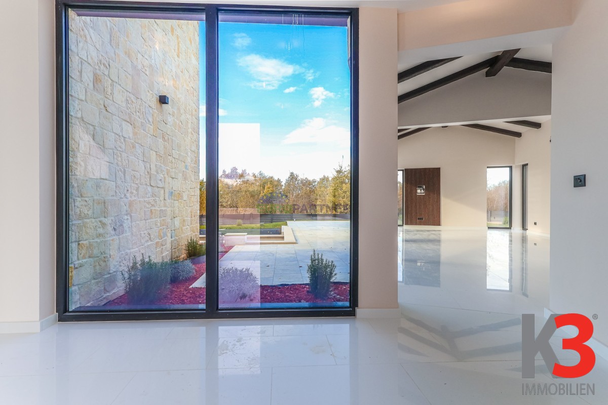 Zum Verkauf steht eine wunderschöne Designer-Villa mit modernem Design und traditionellen istrischen Steinelementen, gelegen in einer ruhigen Umgebung, nur 4 km vom Zentrum von Poreč und dem Meer entfernt. Die Villa besticht durch ihre hochwertige Architektur, solide Bauweise und sorgfältig ausgewählte Details, die ihr besonderen Charme und Eleganz verleihen.