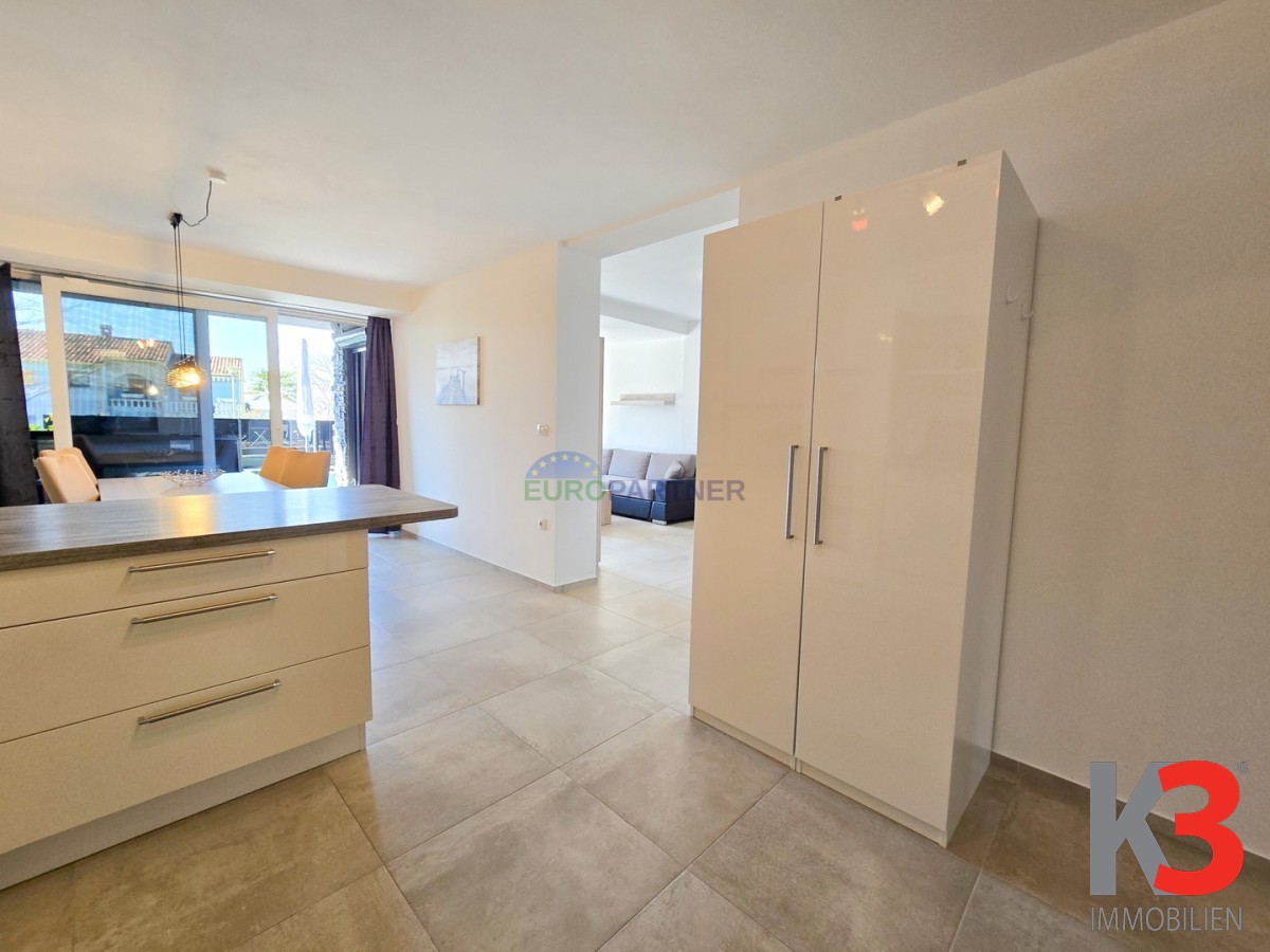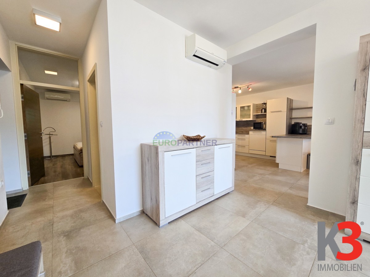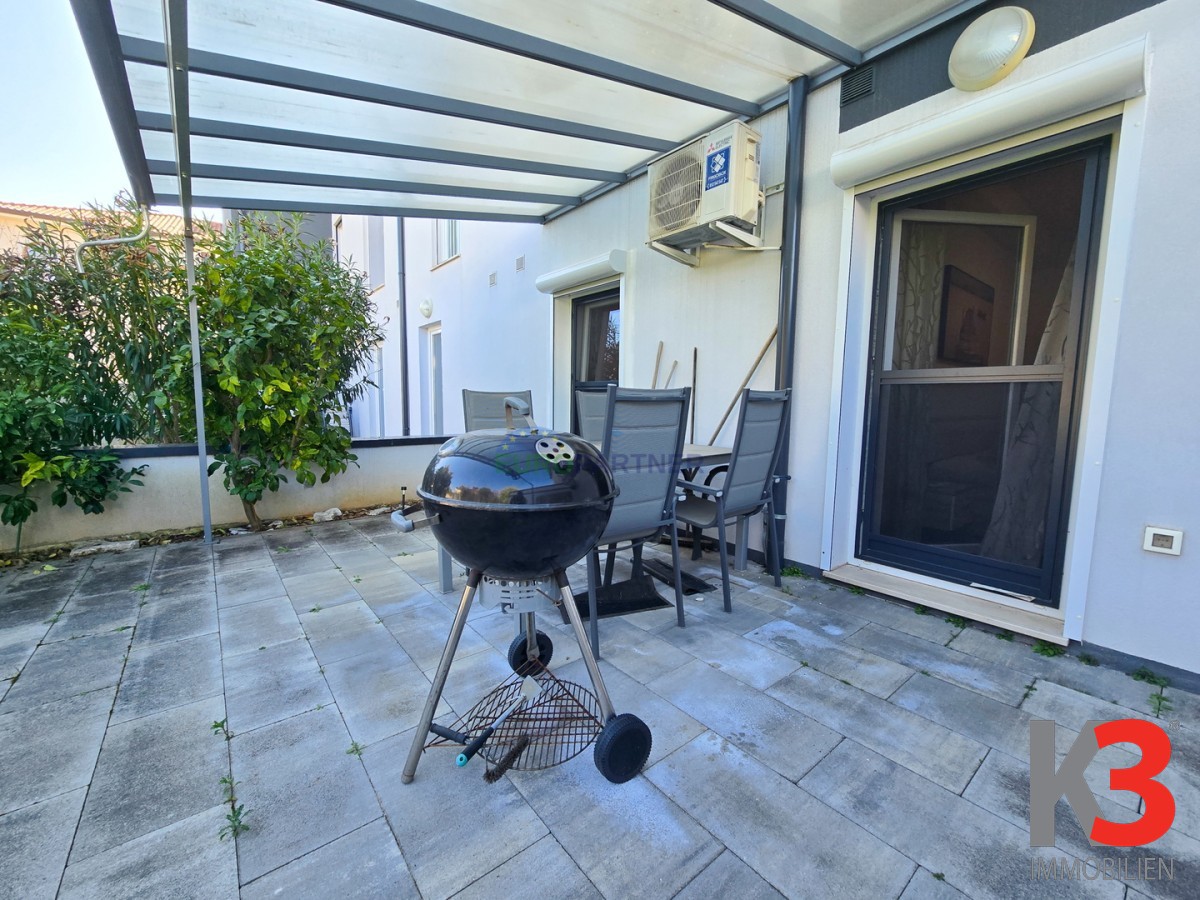 Zur Wohnung gehört auch ein eigener Garten von 100 m2. Der Garten befindet sich sowohl an der Vorder- als auch an der Rückseite des Gebäudes, und im Vorgarten befindet sich ein Swimmingpool für den vollen Genuss an heißen Sommertagen. Der Garten an der Rückseite des Gebäudes ist perfekt zum Entspannen und für geselliges Beisammensein während der heißesten Monate.