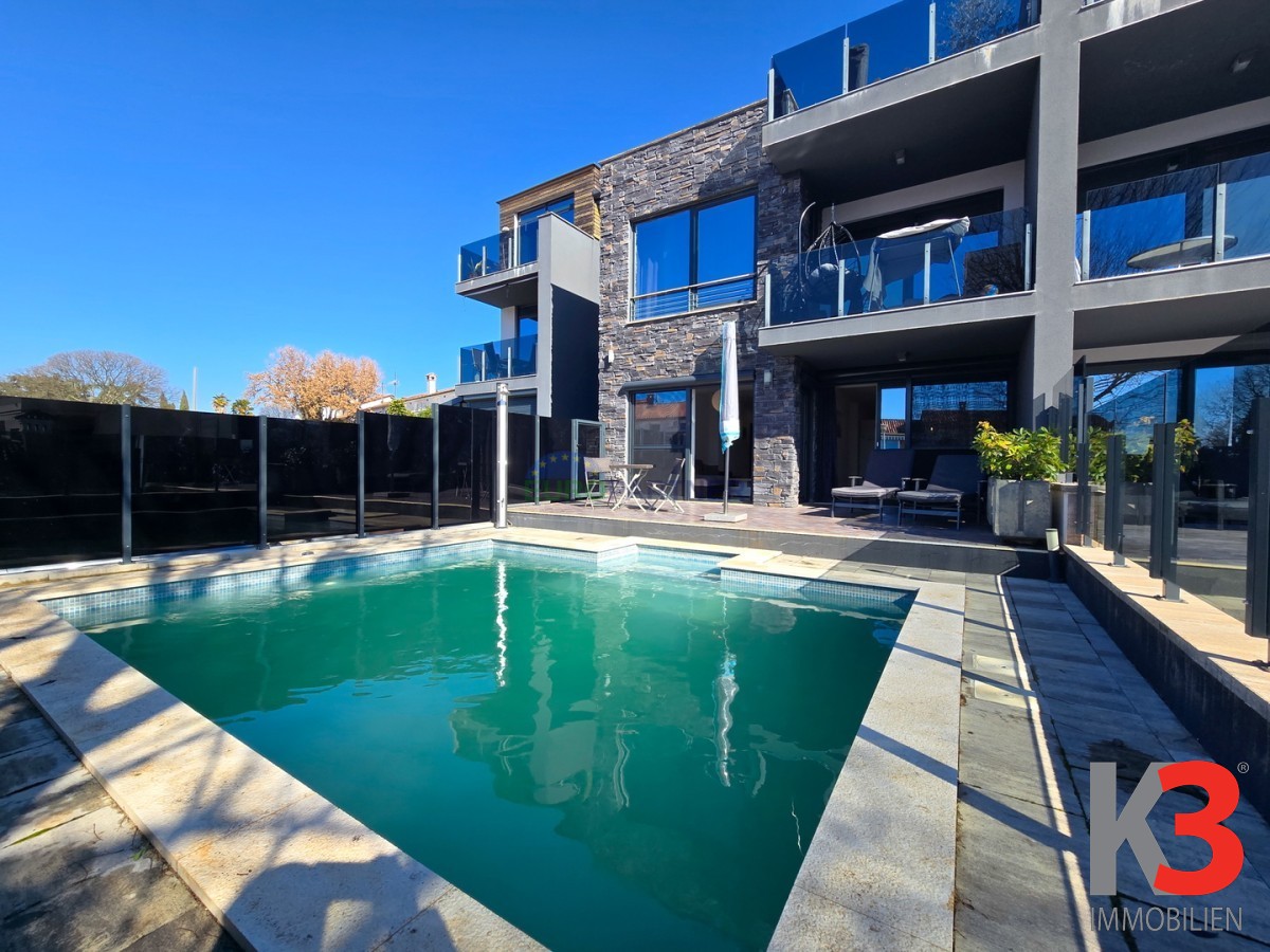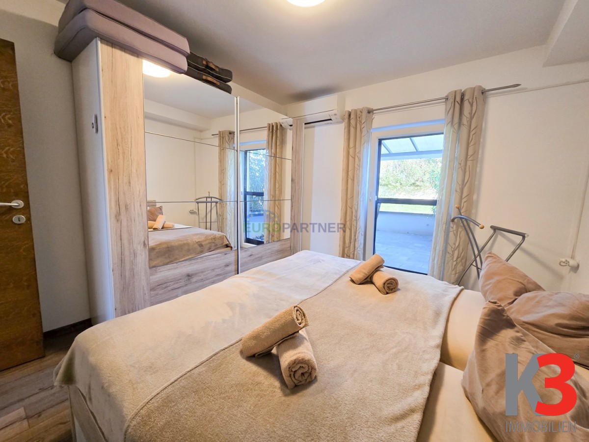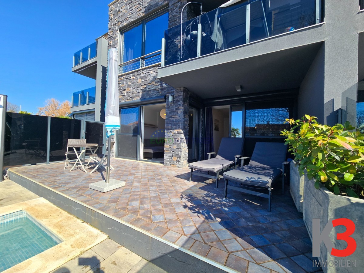 Zum Verkauf steht eine wunderschöne Luxuswohnung mit Swimmingpool in der Nähe von Poreč. Die Wohnung befindet sich in einer ruhigen Wohngegend, 5 km vom Zentrum von Poreč und 3 km vom ersten Strand entfernt.