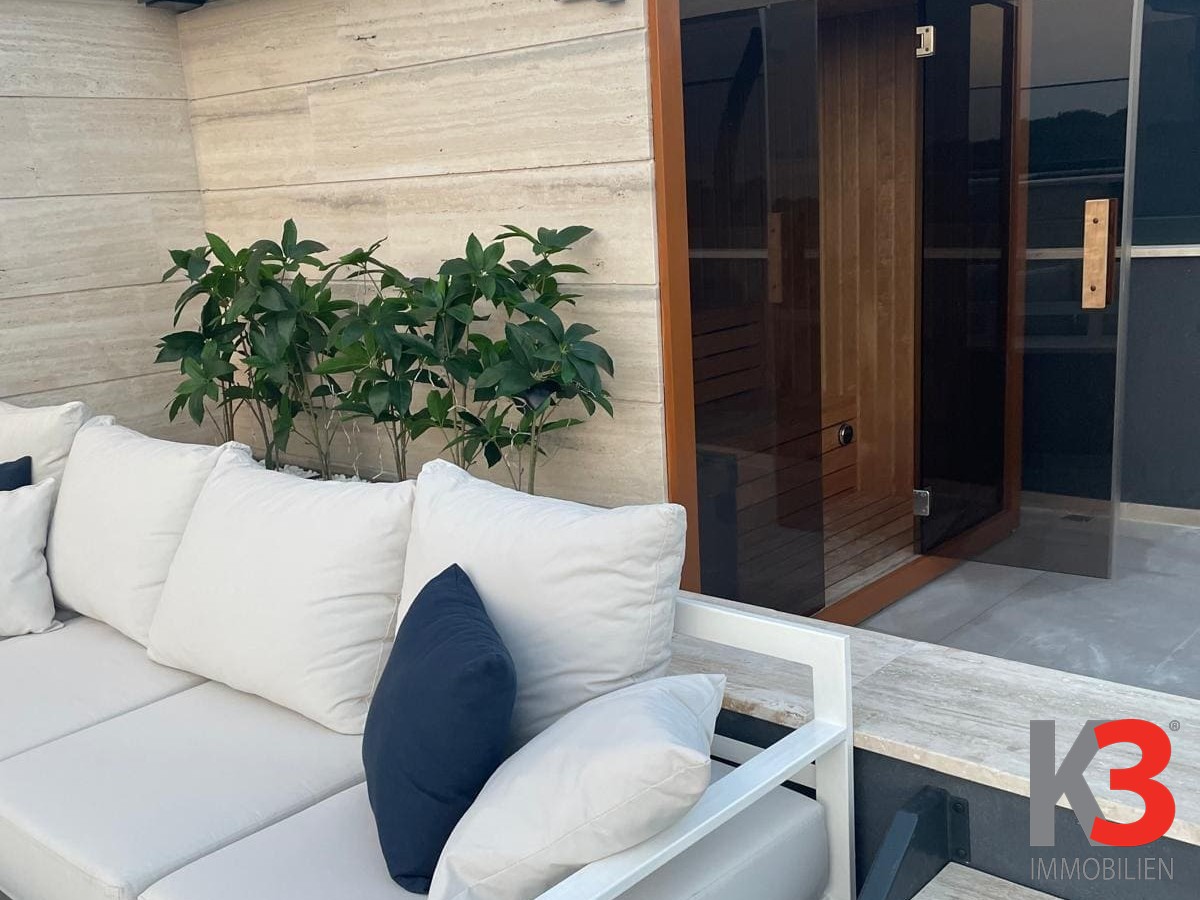 Dieses exklusive Penthouse ist zusätzlich mit luxuriösen Ausstattungen wie einer Sauna versehen und unterstreicht eine Lebensphilosophie, bei der Genuss an erster Stelle steht.