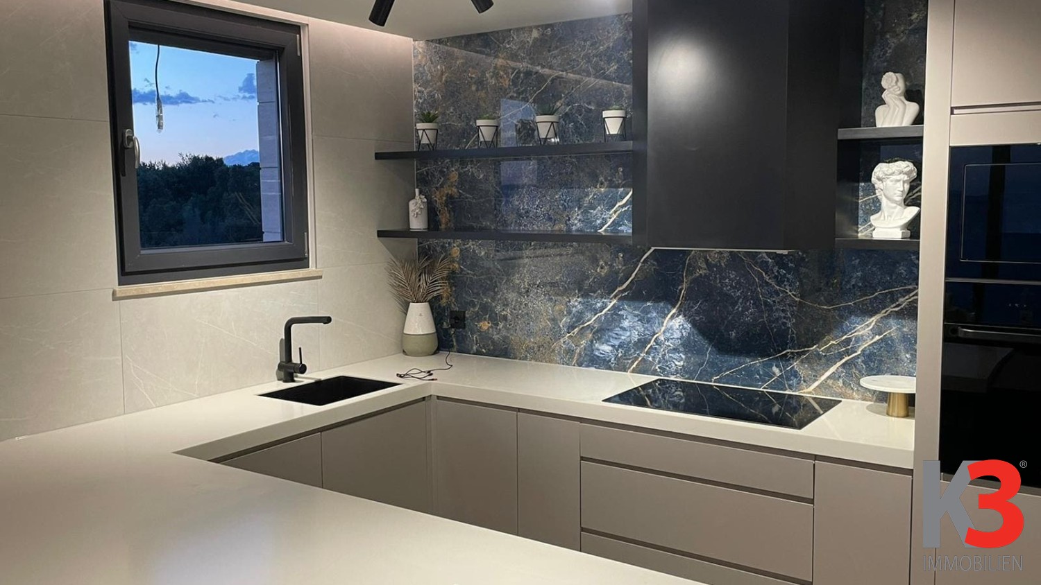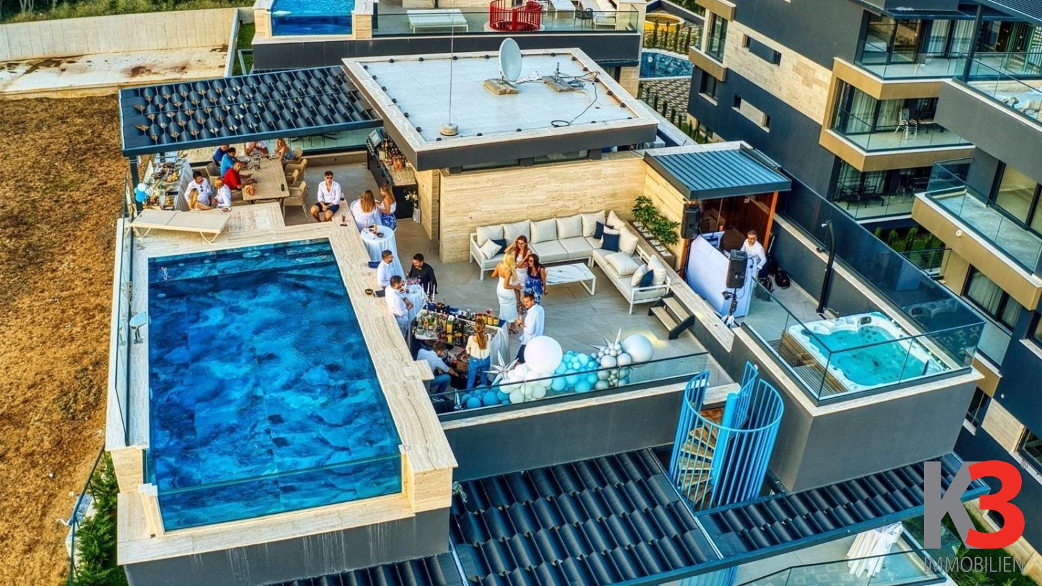 Im Herzen des prestigeträchtigen Kožino befindet sich ein luxuriöses Penthouse, das erstklassige Architektur, perfekte Ausstattung und unvergleichlichen Komfort vereint.