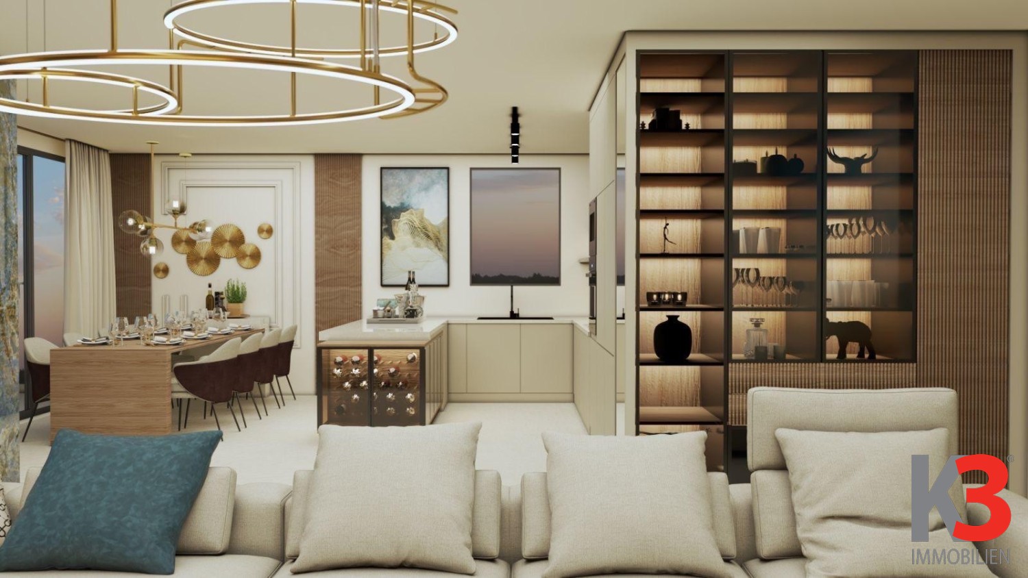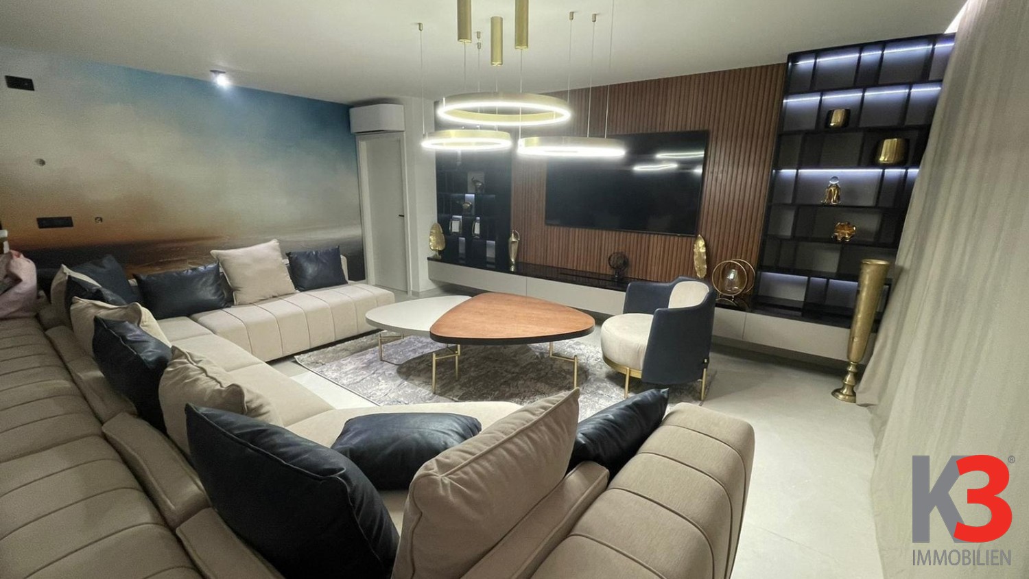Bereits beim Betreten der großzügigen Wohnung mit einer Gesamtfläche von 185,39 m² empfängt Sie ein elegantes Ambiente, in dem jedes Detail durch sorgfältig ausgewählte Materialien hervorsticht.