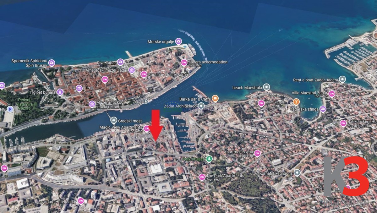 Wenn Sie derzeit über eine eigene Wohnung irgendwo an der dalmatinischen Küste nachdenken, umfasst unser Verkaufsangebot eine Maisonette-Wohnung im Zentrum von Zadar, in unmittelbarer Nähe der Stadtbrücke. Stadt Zadar, das Herz der dalmatinischen Küste, verdankt seine Attraktivität seiner natürlichen Lage Adriaküste, umgeben von vier Nationalparks: den Plitvicer Seen, dem Bergpark Paklenica, den einzigartigen Wasserfällen des Flusses Krka und einer Reihe wunderschöner Kornaten-Inseln.