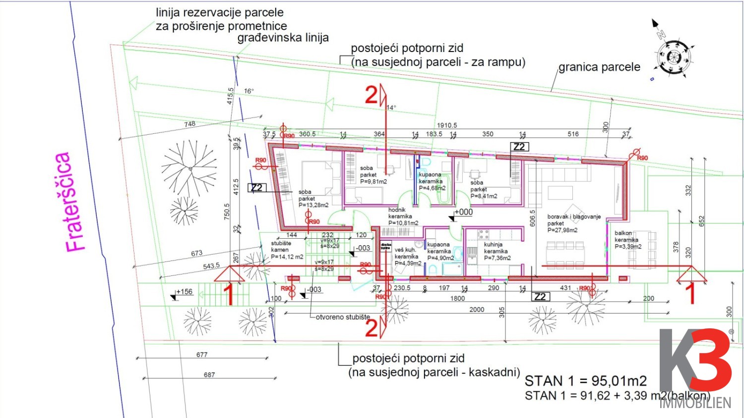 Zagreb, Fraterščica – Neubau 4-Zimmer-Wohnung + 2 Außenstellplätze + 1 Garagenstellplatz, 108 m²