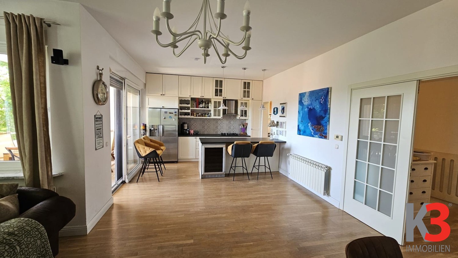 Eine Luxuswohnung, Neubau (2007), steht im exklusivsten Stadtteil Zagrebs, Gornje Prekrižje, nur wenige Autominuten von Tuškanac und Cmrok entfernt, zum Verkauf. Die Wohnung erstreckt sich über zwei Etagen mit einer Gesamtfläche von 192 m². Zusätzlich verfügt sie über einen 150 m² großen Garten, eine Garage und einen Stellplatz (insgesamt 230 m² NKP).