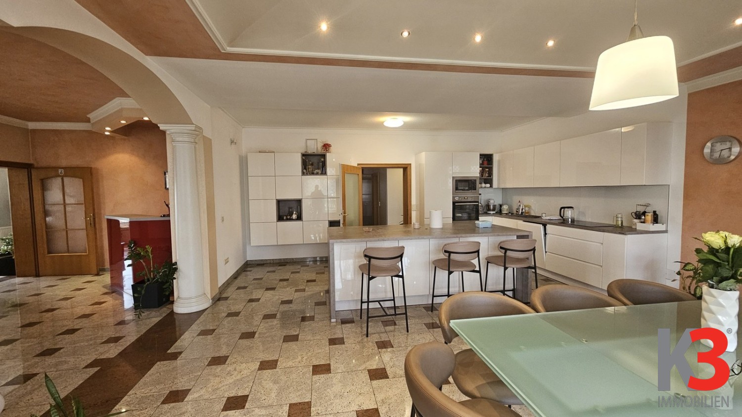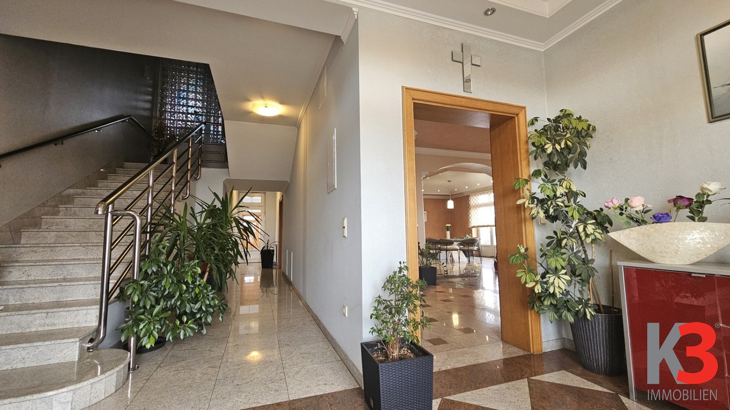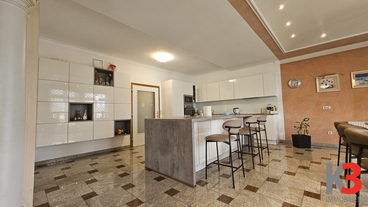 Das zweite Obergeschoss/Dachgeschoss wird bereits als separate Wohnung genutzt und besteht aus einem Wohnzimmer mit Küche und Essbereich, zwei Schlafzimmern mit begehbarem Kleiderschrank, einem Badezimmer mit Abstellraum, einer Terrasse und einem separaten Raum, der als Abstellkammer dient.
