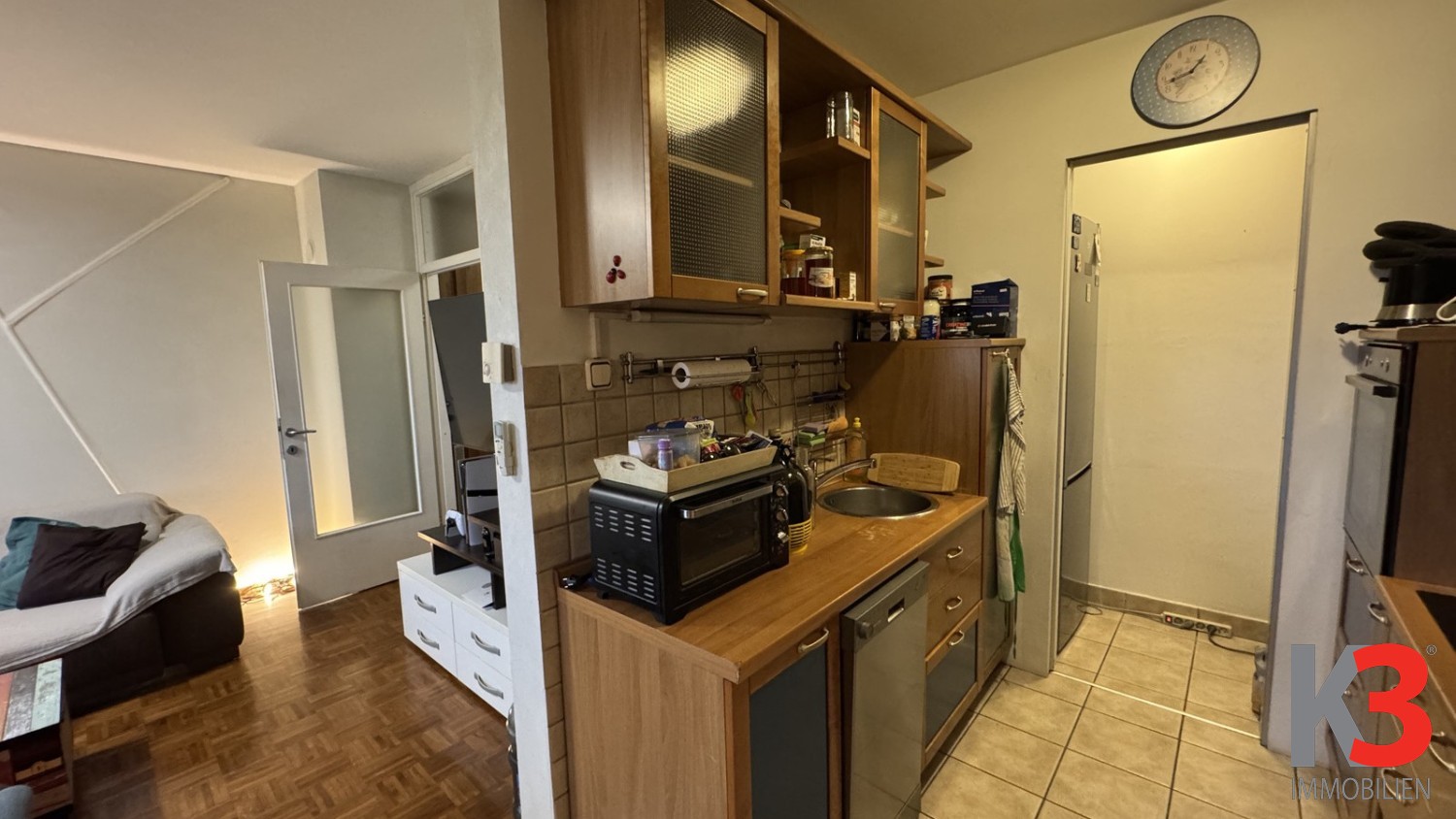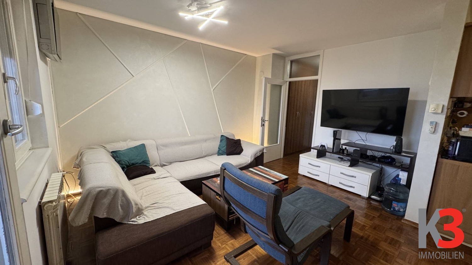 Aufgrund des guten Grundrisses besteht die Möglichkeit, den Raum umzubauen und ein weiteres Zimmer zu schaffen, wodurch die Wohnung zu einer Vierzimmerwohnung werden kann.