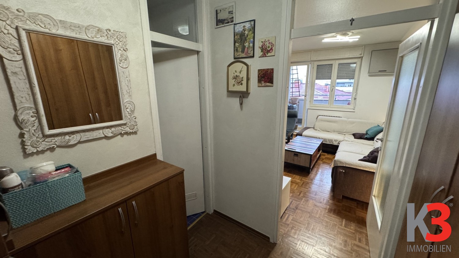 Zum Verkauf steht eine Dreizimmerwohnung mit einer Gesamtfläche von 77 m², gelegen im fünften Stock eines Gebäudes mit Aufzug in einem ruhigen und gefragten Stadtteil Špansko.