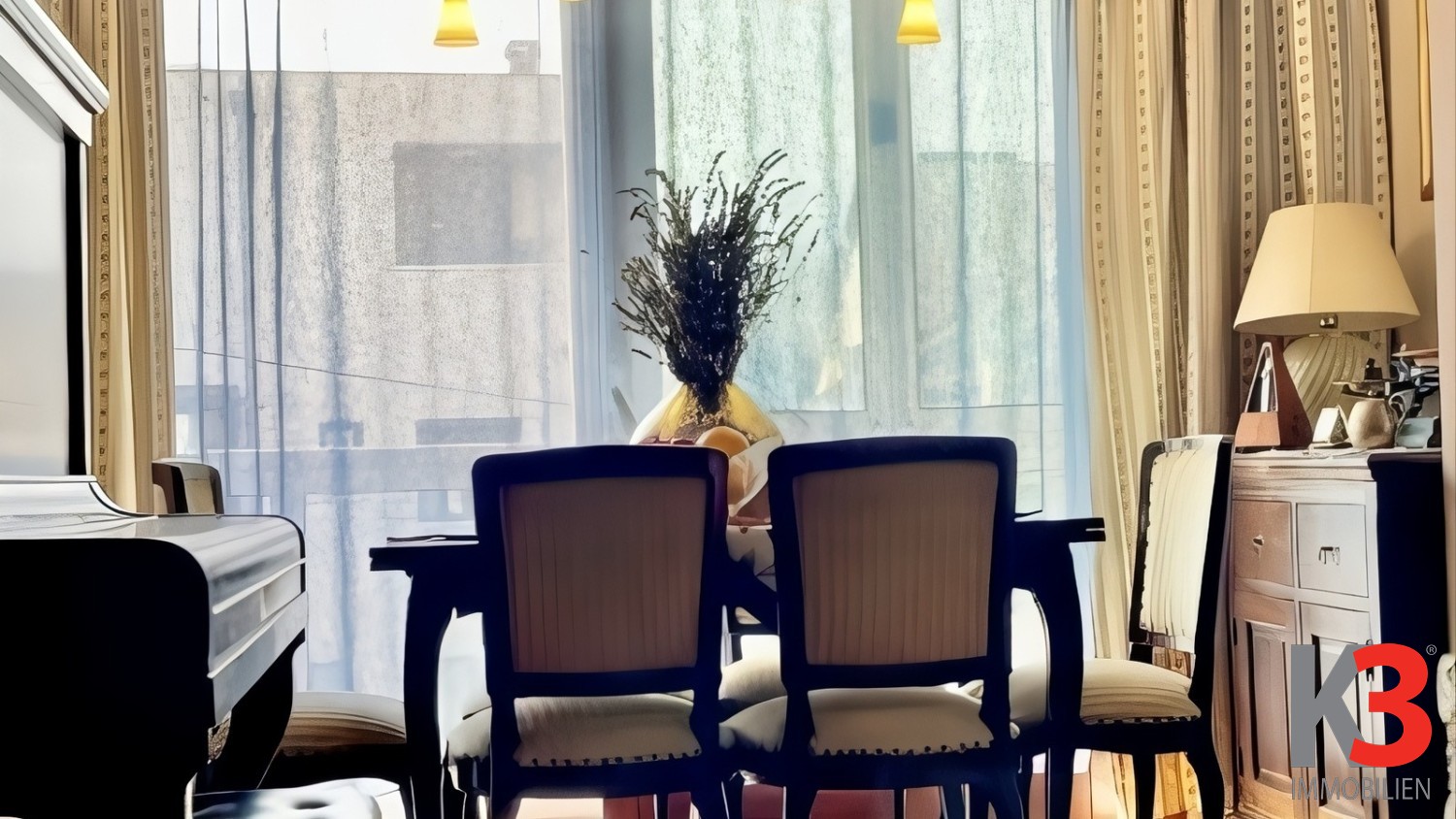 Die Wohnung erstreckt sich über die gesamte Etage, und die Ost-West-Ausrichtung sorgt den ganzen Tag über für viel natürliches Licht.